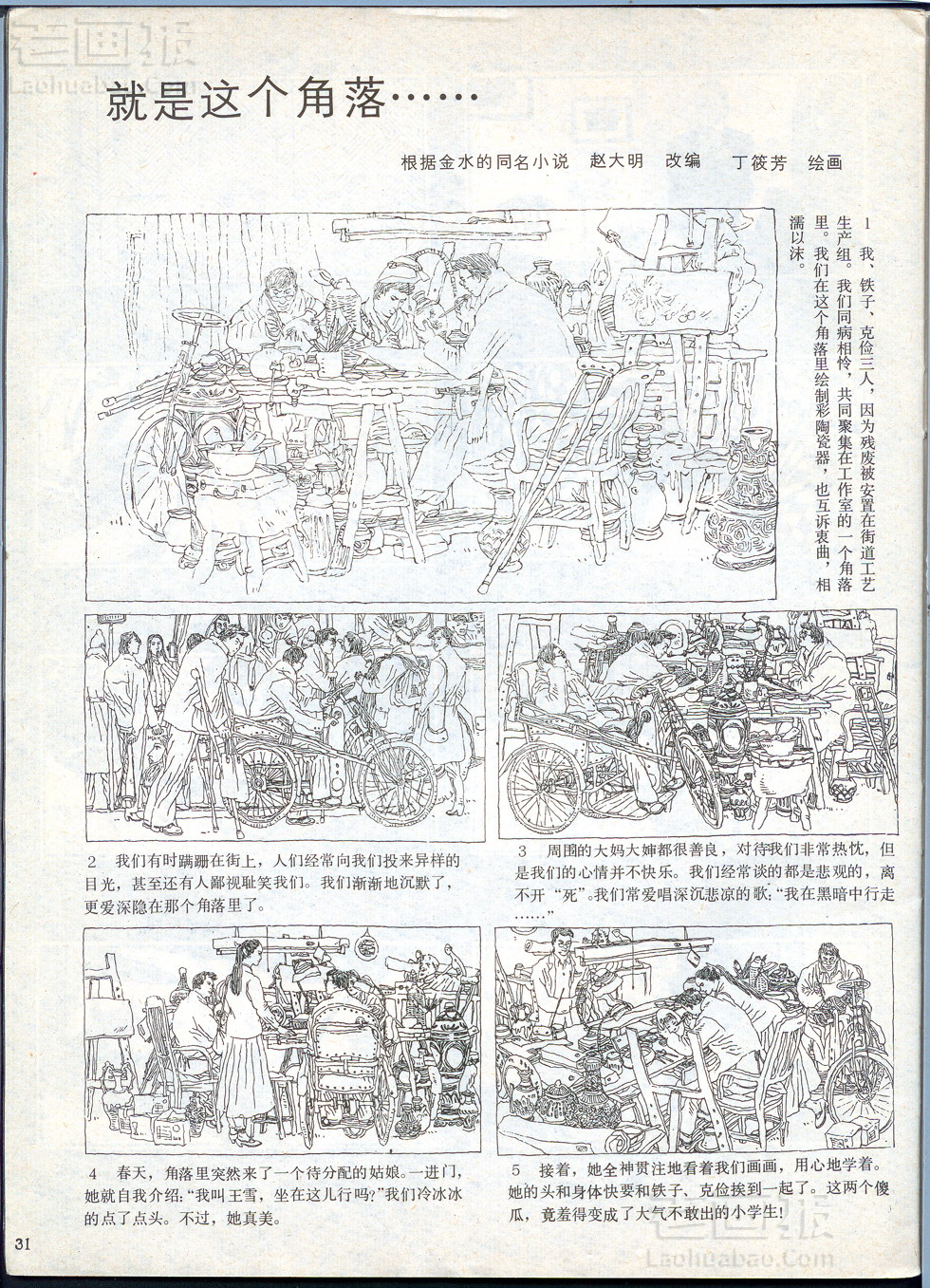 就是这个角落 原著:金水 编文:赵大明 绘画:丁筱芳 原载:万花筒连环画报 1986年10期 海阔中文网画报藏书扫描 1 2 3 4 目录 |<< < 上一页 下一页 > >>| 就是这个角落 < 上一页下一页 >