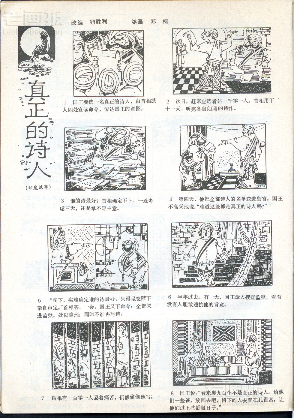真正的诗人 原著:印度故事 编文:钮胜利 绘画:邓柯 原载:万花筒连环画报 1986年4期 海阔中文网画报藏书扫描 1 2 目录 |<< < 上一页 下一页 > >>| 真正的诗人 < 上一页下一页 >