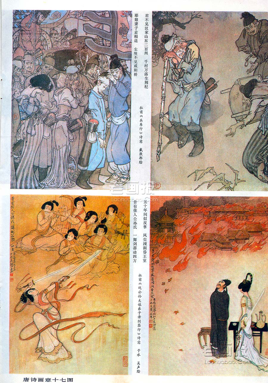 杜甫《兵车行》《观公孙大娘弟子舞剑器行》诗意 唐诗画意十七图 原著:佚名 编文:佚名 绘画:戴敦邦 于水 吴声 原载:富春江画报 1982年4期 海阔中文网画报藏书扫描 目录 |<< < 上一页 下一页 > >>| 杜甫《兵车行》《观公孙大娘弟子舞剑器行》诗意 唐诗画意十七图 < 上一页下一页 >