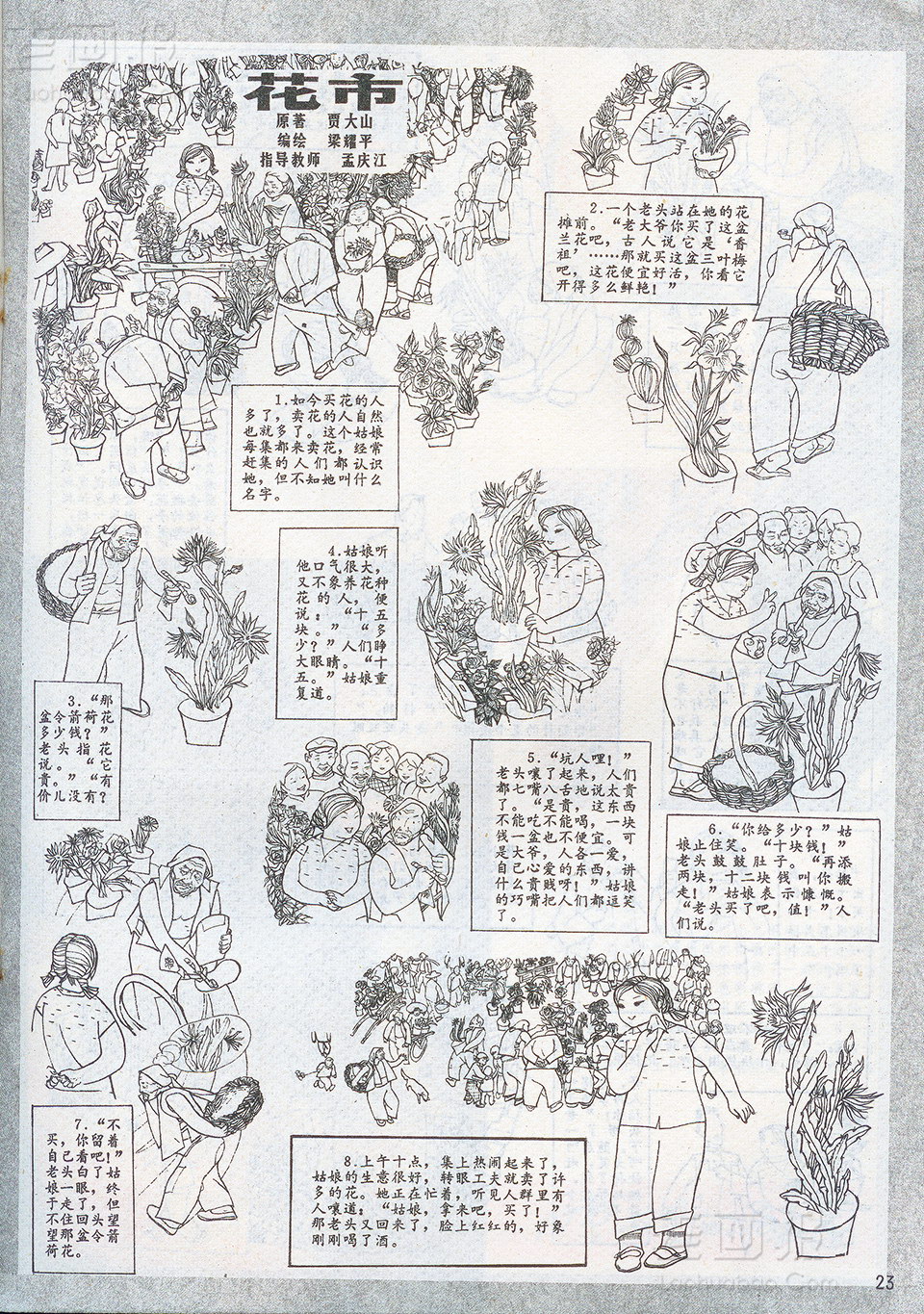 花市 原著:贾大山 编文:梁耀平 绘画:梁耀平 指导教师 孟庆江 原载:富春江画报 1983年6期 海阔中文网画报藏书扫描 1 2 目录 |<< < 上一页 下一页 > >>| 花市 < 上一页下一页 >