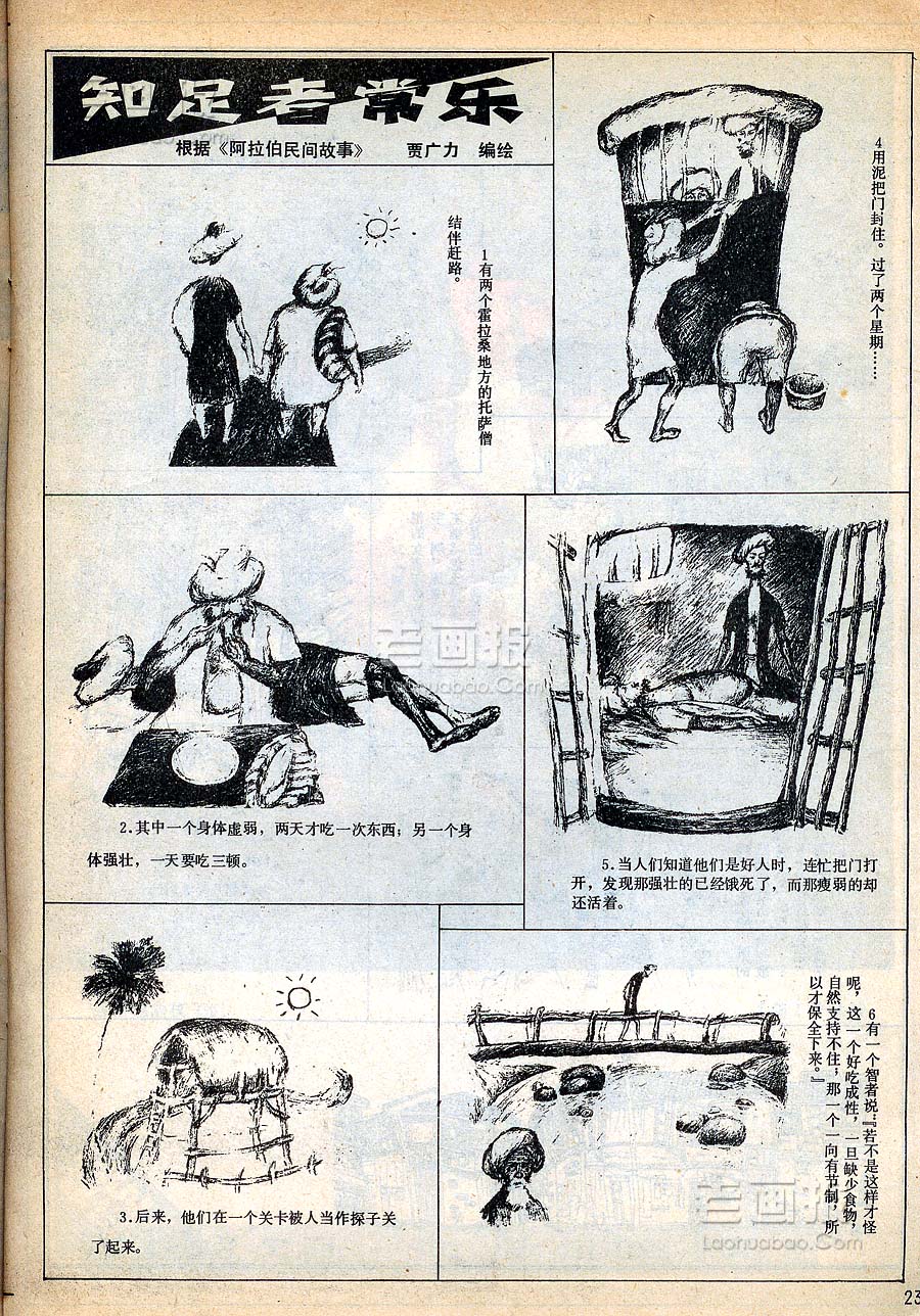 知足者常乐 原著:根据《阿拉伯民间故事》 编文:贾广力 绘画:贾广力 原载:富春江画报 1985年6期 海阔中文网画报藏书扫描 目录 |<< < 上一页 下一页 > >>| 知足者常乐 < 上一页下一页 >