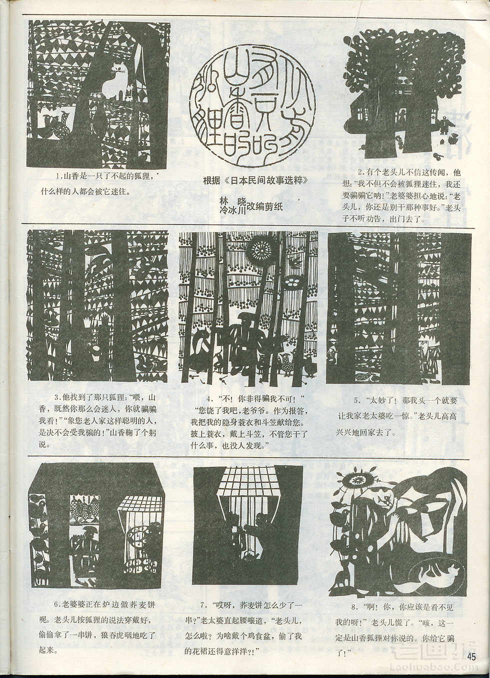 从前,又一只叫山香的狐狸 原著:《日本民间故事选粹》 编文:林晓,冷冰川 绘画:林晓,冷冰川 原载:富春江画报 1986年4期 海阔中文网画报藏书扫描 目录 |<< < 上一页 下一页 > >>| 从前,又一只叫山香的狐狸 < 上一页下一页 >