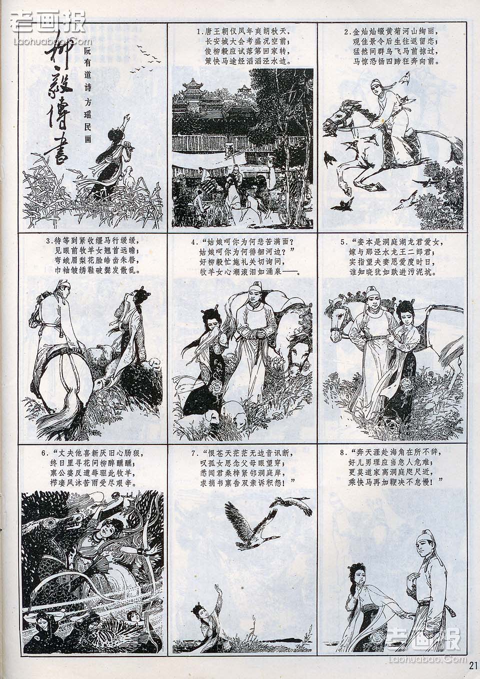 柳毅传书 原著:佚名 编文:软有道 绘画:方瑶民 原载:工农兵画报 1980年5期 海阔中文网画报藏书扫描 1.唐王朝仪凤年爽朗秋天,长安城大会考盛况空前;俊柳毅应试落第回家转,策快马途经滔滔泾水边。4.“姑娘呵你为何悲苦满面?姑娘呵你为何徘徊河边?’好柳毅忙施礼关切询问,牧羊女心潮滚泪如涌泉——。 1 2 3 4 目录 |<< < 上一页 下一页 > >>| 柳毅传书 < 上一页下一页 >