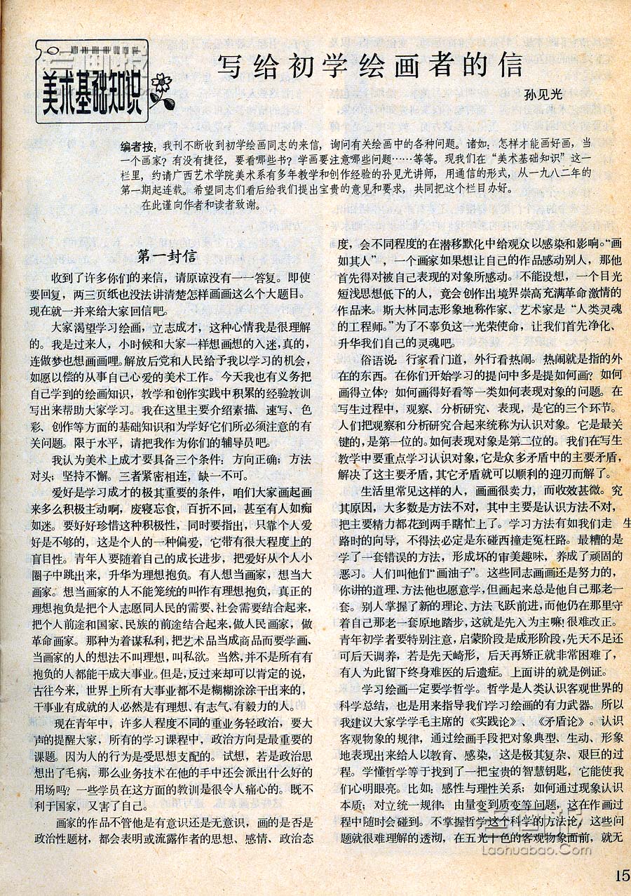 写给初学绘画者的信 原著:佚名 编文:孙见光 绘画:孙见光 原载:广西美术 1982年1期 海阔中文网画报藏书扫描 1 2 目录 |<< < 上一页 下一页 > >>| 写给初学绘画者的信 < 上一页下一页 >