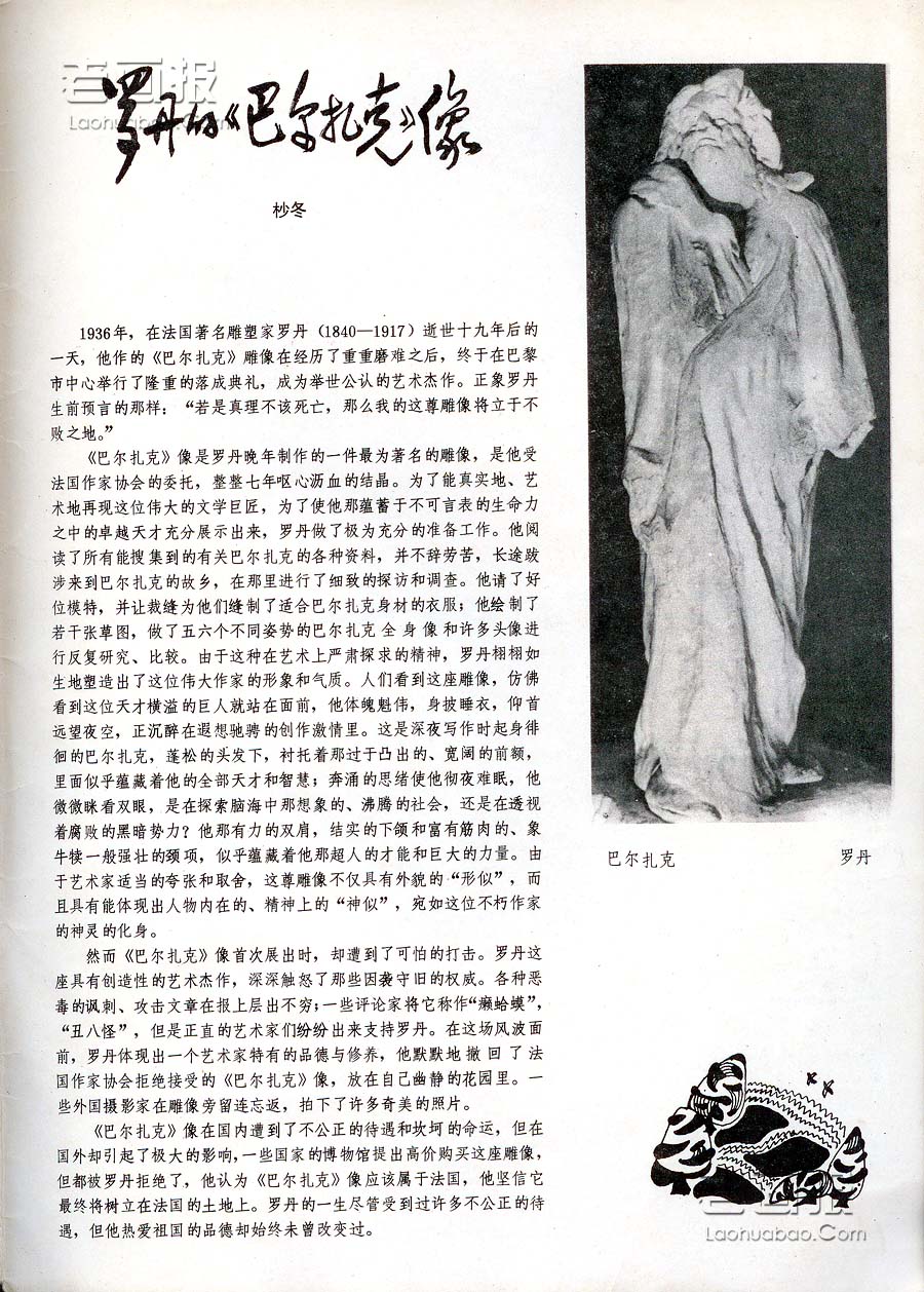 1936年,在法国著名雕塑家罗丹(1840-1917)逝世十九年后的一天,他作的《巴尔扎克》雕像在经历了重重磨难之后,终于在巴黎市中心举行了隆重的落成典礼,成为举世公认的艺术杰作。正象罗丹生前预言的那样:“若是真理不该死亡,那么我的这尊雕像将立于不败之地。”