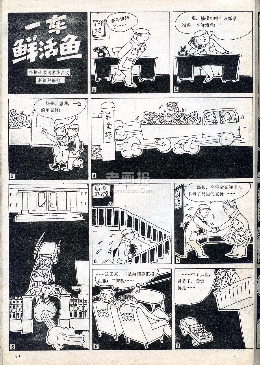 一车鲜活鱼 原著:子禾同名小品 编文:赵镇琬 绘画:赵镇琬 原载:连环画报 1982年1期 海阔中文网画报藏书扫描 1 2 目录 |<< < 上一页 下一页 > >>| 一车鲜活鱼 < 上一页下一页 >