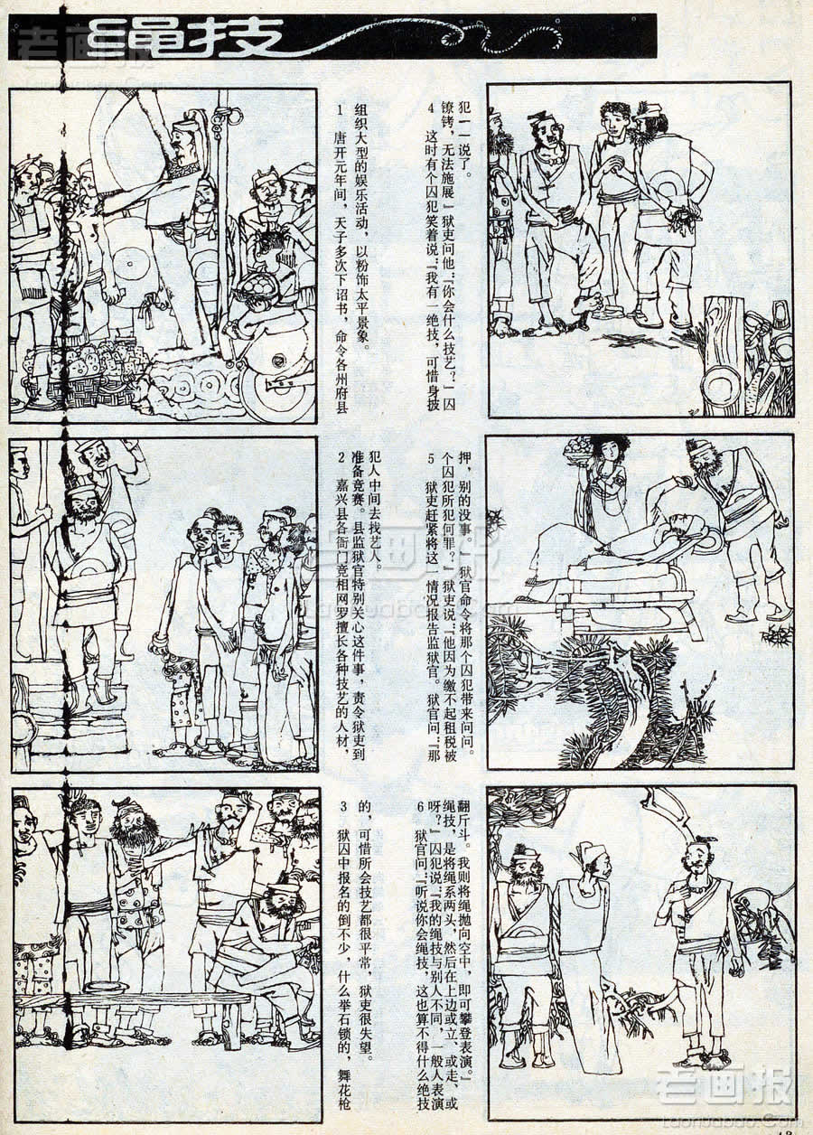 绳技 原著:皇甫氏 同名小说 编文:二雷 绘画:聂鸥 原载:连环画报 1982年5期 海阔中文网画报藏书扫描 "t1"-唐开元年间,天子多次下诏书,命令各州府县组织大型的娱乐活动,以粉饰太平景象。"/t1" 1 2 目录 |<< < 上一页 下一页 > >>| 绳技 < 上一页下一页 >