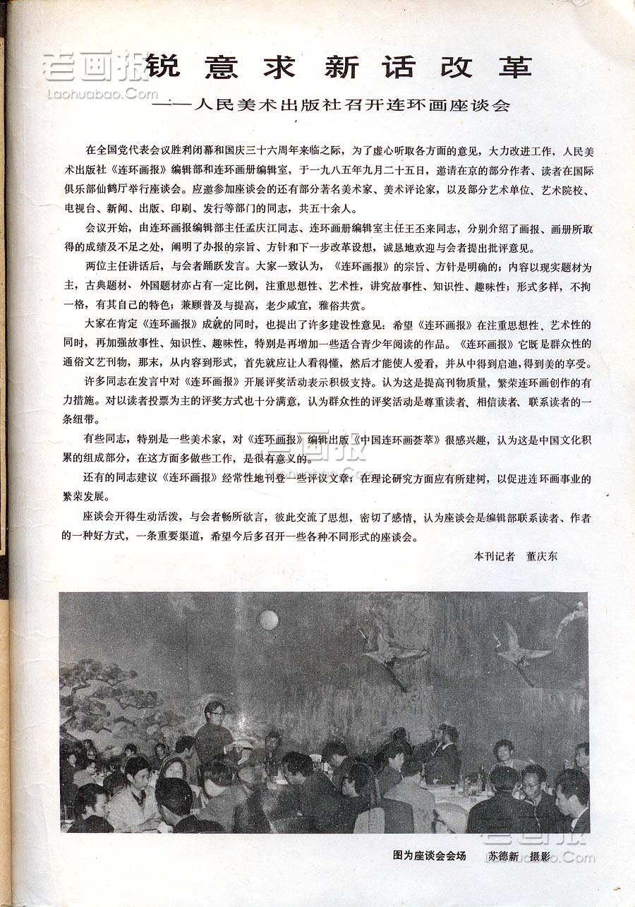 锐意求新话改革 人民美术出版社召开连环画座谈会 原著:佚名 编文:董庆东 摄影:苏德新 原载:连环画报 1985年11期 海阔中文网画报藏书扫描 目录 |<< < 上一页 下一页 > >>| 锐意求新话改革 人民美术出版社召开连环画座谈会 < 上一页下一页 >