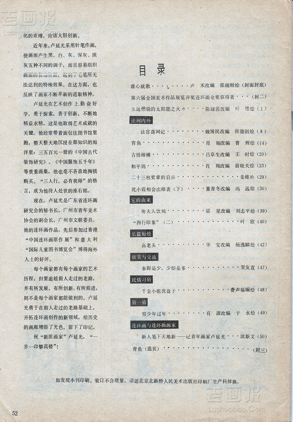 新人笔下天地新--记青年画家卢延光 第3页 原著:佚名 编文:洪斯文 绘画:卢延光 原载:连环画报 1985年3期 海阔中文网画报藏书扫描 1 2 3 目录 |<< < 上一页 下一页 > >>| 新人笔下天地新--记青年画家卢延光 < 上一页下一页 >
