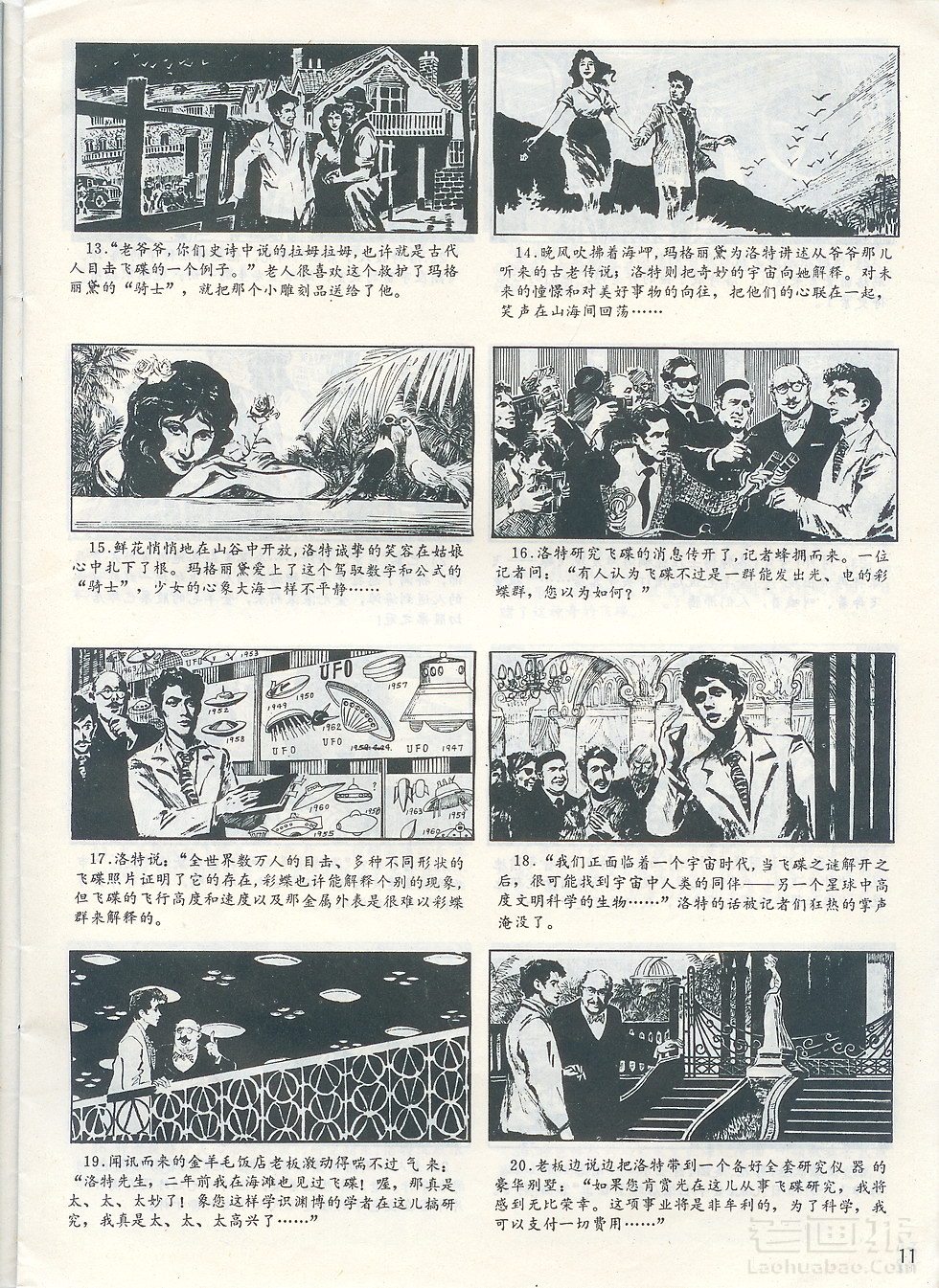 连环画 《飞碟之谜》 第3页 编文:海生 绘画:达亮 工农兵画报 1979年第6期 海阔中文网画报藏书扫描制作 转载请注明出处 1 2 3 4 5 6 7 目录 |<< < 上一页 下一页 > >>| 飞碟之谜 < 上一页下一页 >