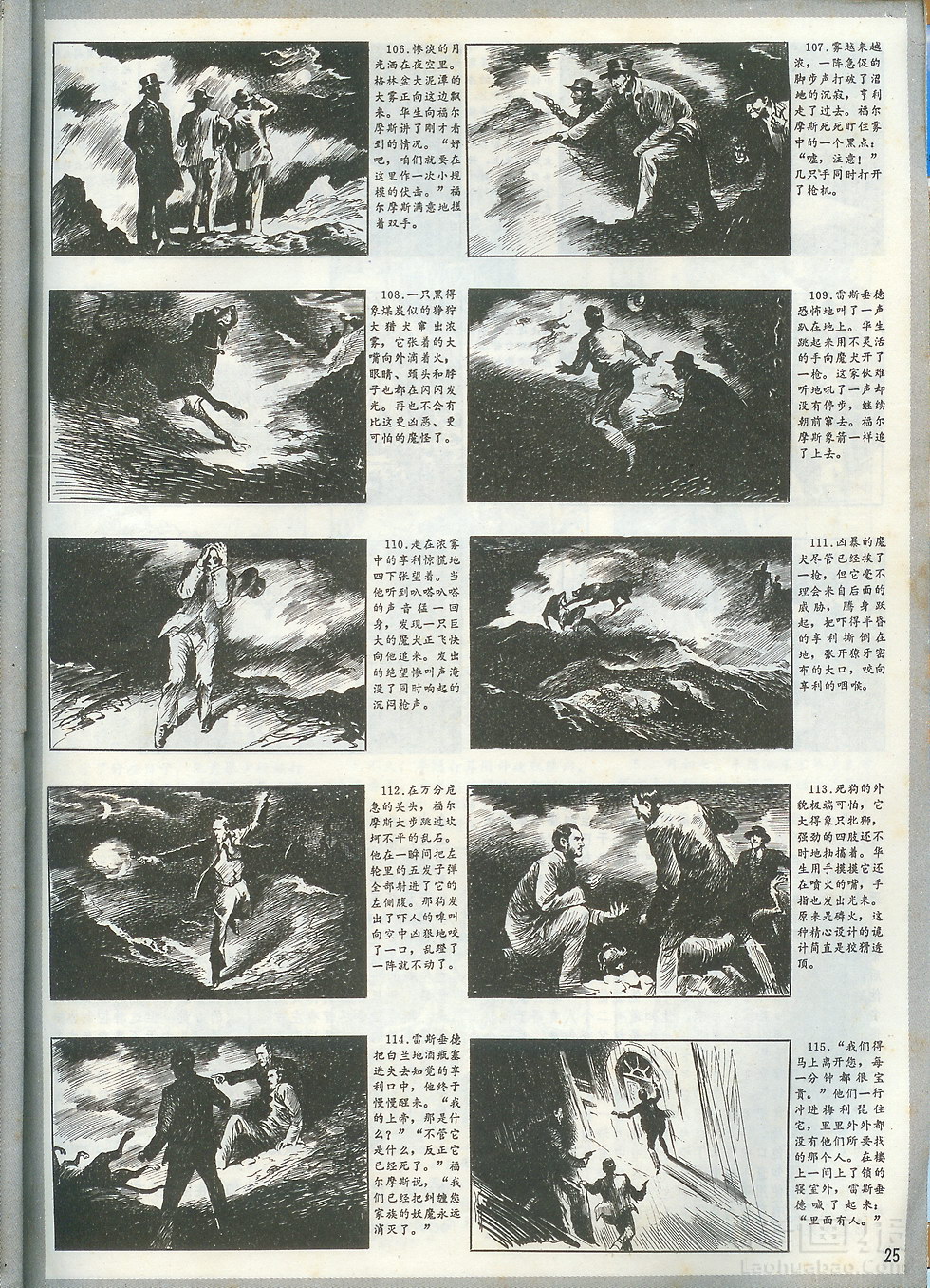 连环画 《巴斯克维尔的猎犬(续)》 第5页 原著:[英]柯南道尔 编文:韩幼文 绘画:黄云松 工农兵画报 1979年第8期 海阔中文网画报藏书扫描制作 转载请注明出处 1 2 3 4 5 6 目录 |<< < 上一页 下一页 > >>| 巴斯克维尔的猎犬(续) < 上一页下一页 >