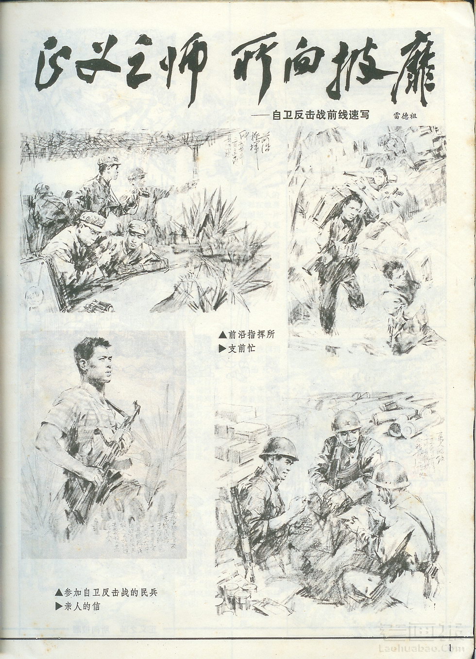 正义之师 所向披靡 自卫反击战前线速写 绘画:雷德祖 工农兵画报 1979年第8期 海阔中文网画报藏书扫描制作 转载请注明出处 1 2 目录 |<< < 上一页 下一页 > >>| 正义之师 所向披靡 自卫反击战前线速写 < 上一页下一页 >