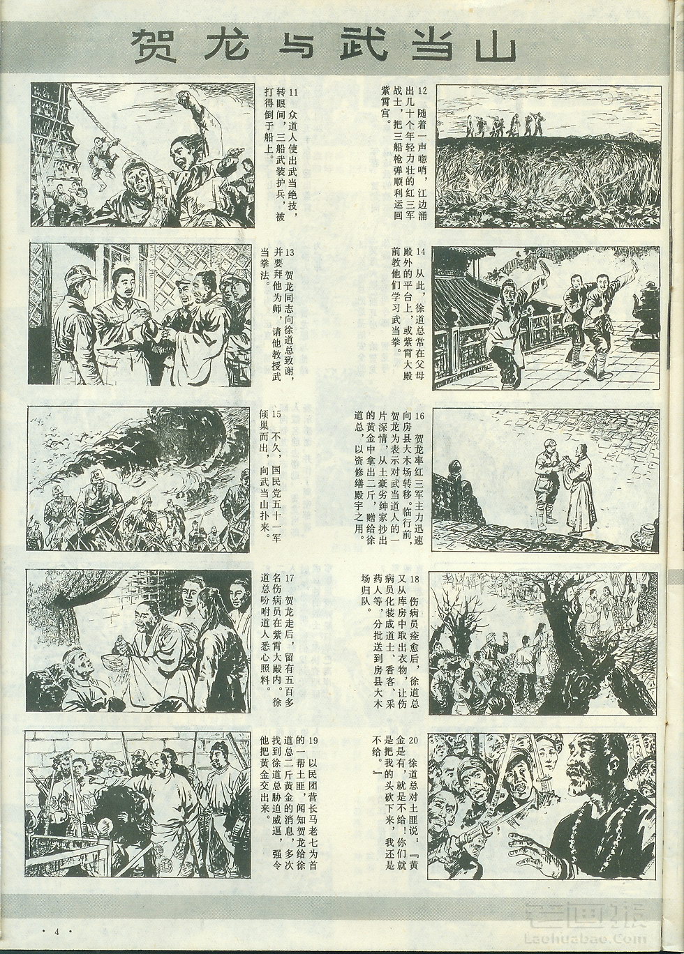 连环画 贺龙与武当山 第2页 编文:张甸 绘画:张东明 新春画报 1985年第11期 海阔中文网画报藏书扫描制作 转载请注明出处 1 2 3 目录 |<< < 上一页 下一页 > >>| 贺龙与武当山 < 上一页下一页 >