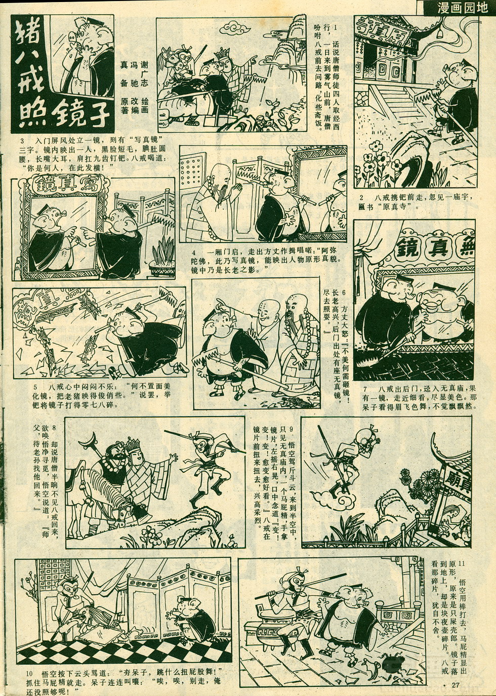 连环画 猪八戒照镜子 原著:真备 编文:冯驰 绘画:谢广志 新春画报 1986年第11期 海阔中文网画报藏书扫描制作 转载请注明出处 目录 |<< < 上一页 下一页 > >>| 猪八戒照镜子 < 上一页下一页 >