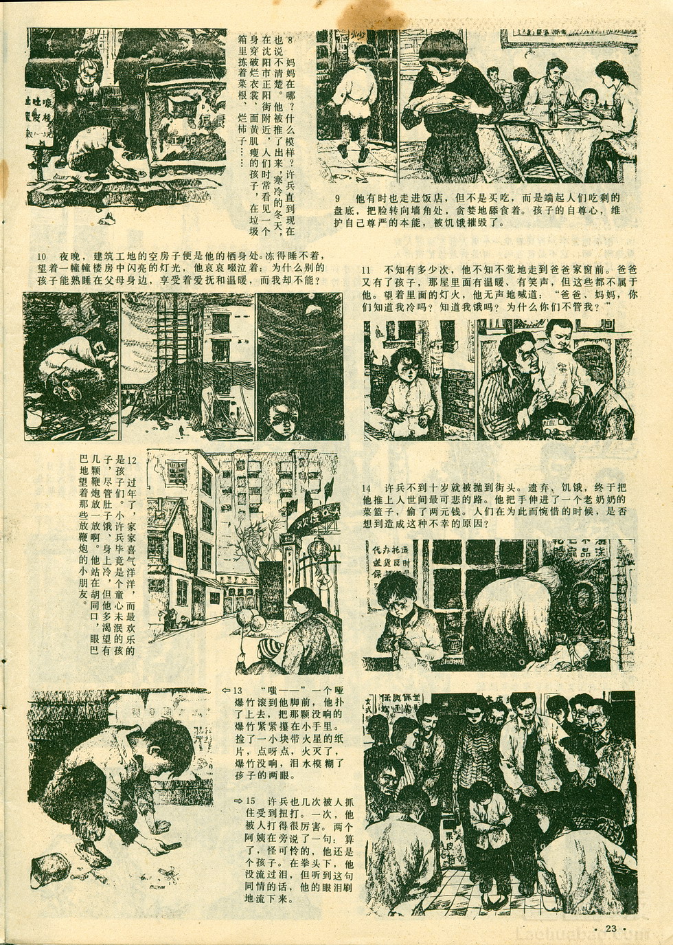 连环画 遗弃儿的悲欢 第2页 原著:孙德生,张剑平 编文:阿伦 绘画:宋玉成 新春画报 1986年第11期 海阔中文网画报藏书扫描制作 转载请注明出处 1 2 3 4 目录 |<< < 上一页 下一页 > >>| 遗弃儿的悲欢 < 上一页下一页 >