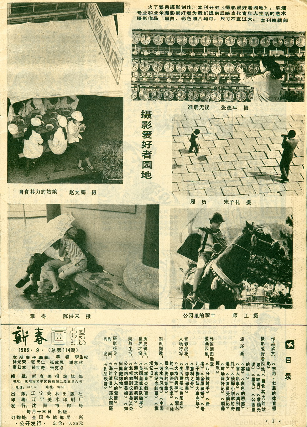 目录页《新春画报》1986.9 编文:佚名 新春画报 1986年第9期 海阔中文网画报藏书扫描制作 转载请注明出处 目录 |<< < 上一页 下一页 > >>| 目录页《新春画报》1986.9 < 上一页下一页 >