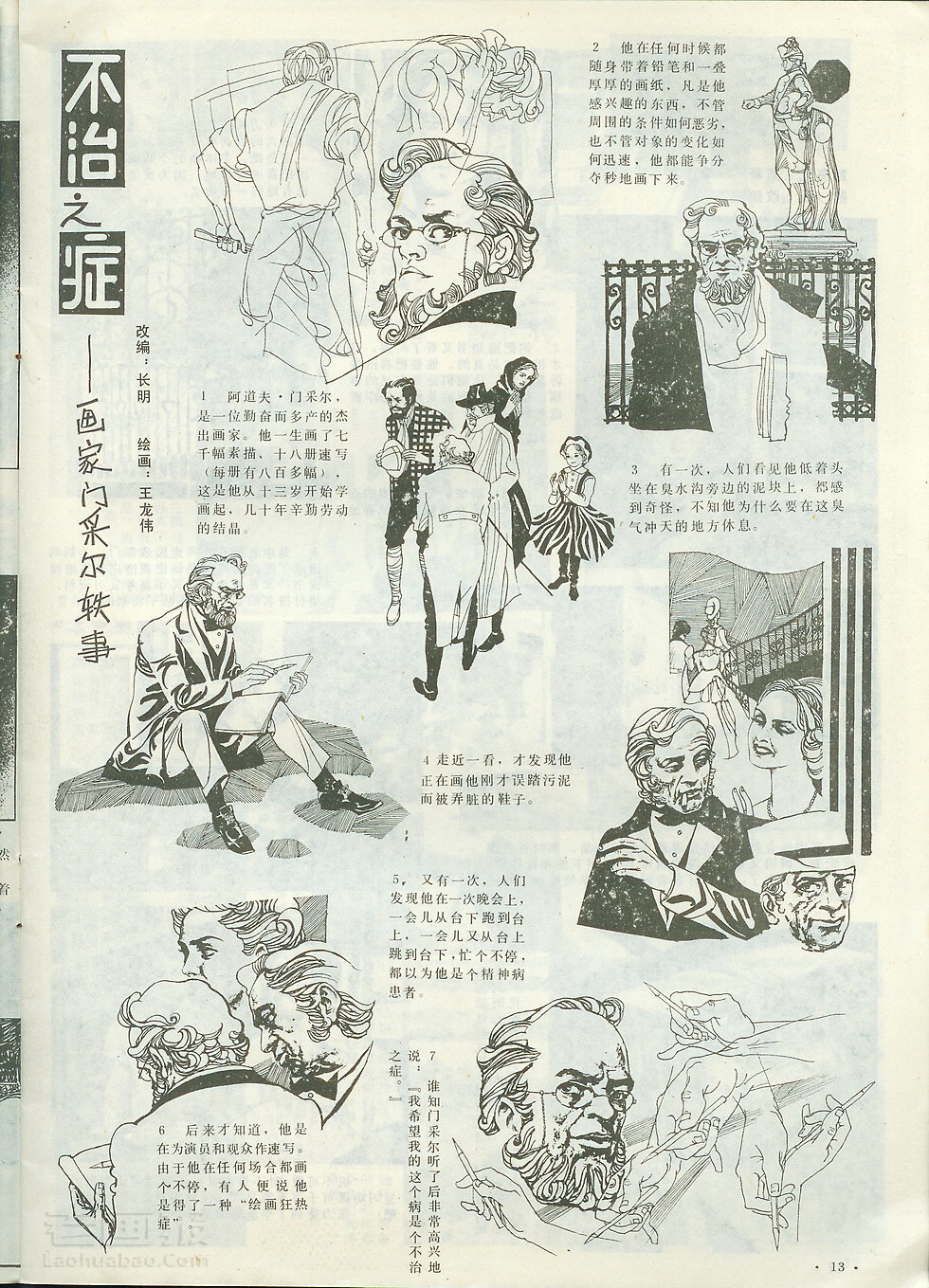 连环画 不治之症 画家门采尔的故事 编文:长明 绘画:王龙伟 新春画报 1987年第10期 海阔中文网画报藏书扫描制作 转载请注明出处 目录 |<< < 上一页 下一页 > >>| 不治之症 画家门采尔的故事 < 上一页下一页 >