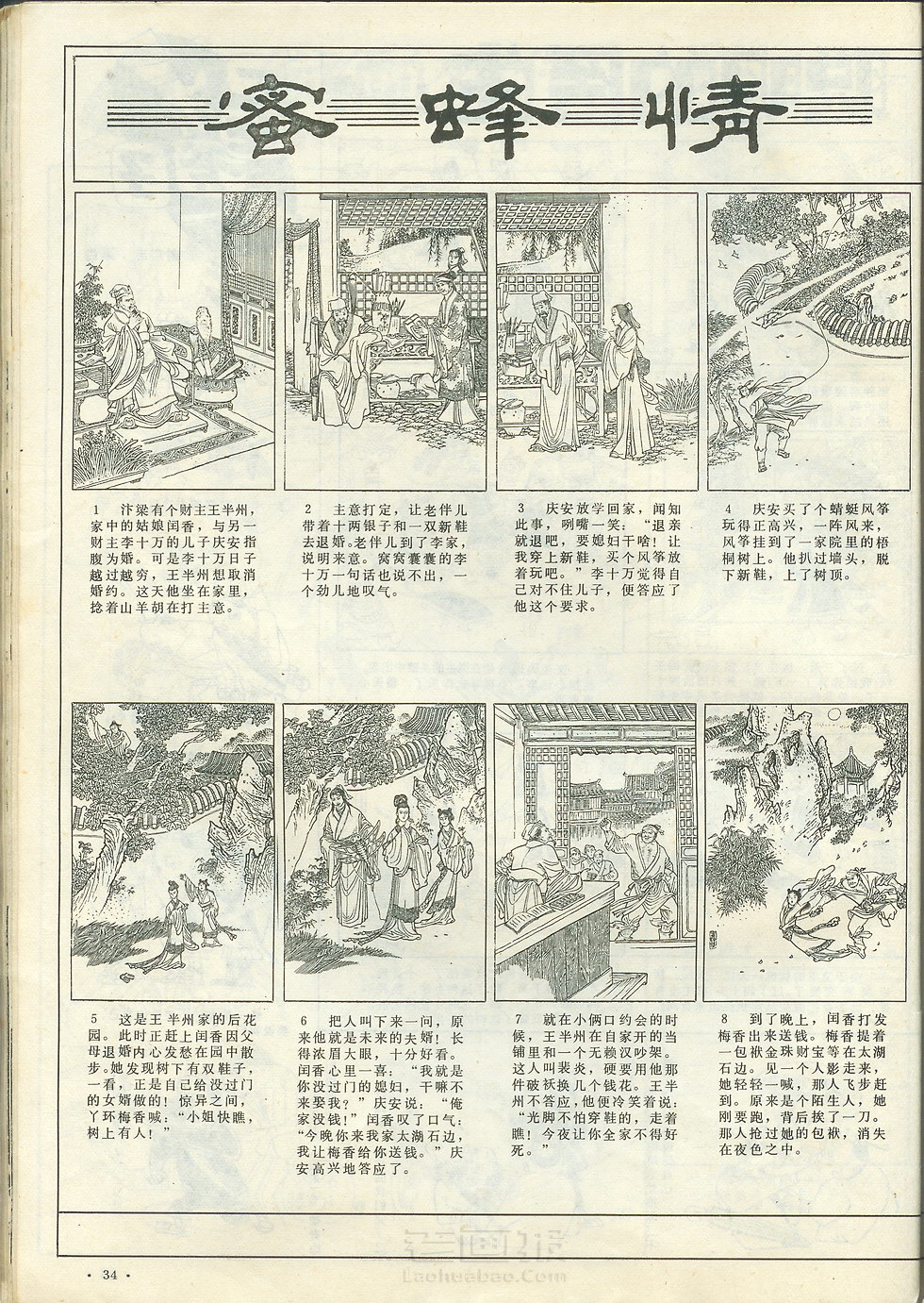 连环画 蜜蜂情 原著:关汉卿《绯衣梦》 编文:彤俐 绘画:张树人 新春画报 1987年第4期 海阔中文网画报藏书扫描制作 转载请注明出处 1 2 3 目录 |<< < 上一页 下一页 > >>| 蜜蜂情 < 上一页下一页 >