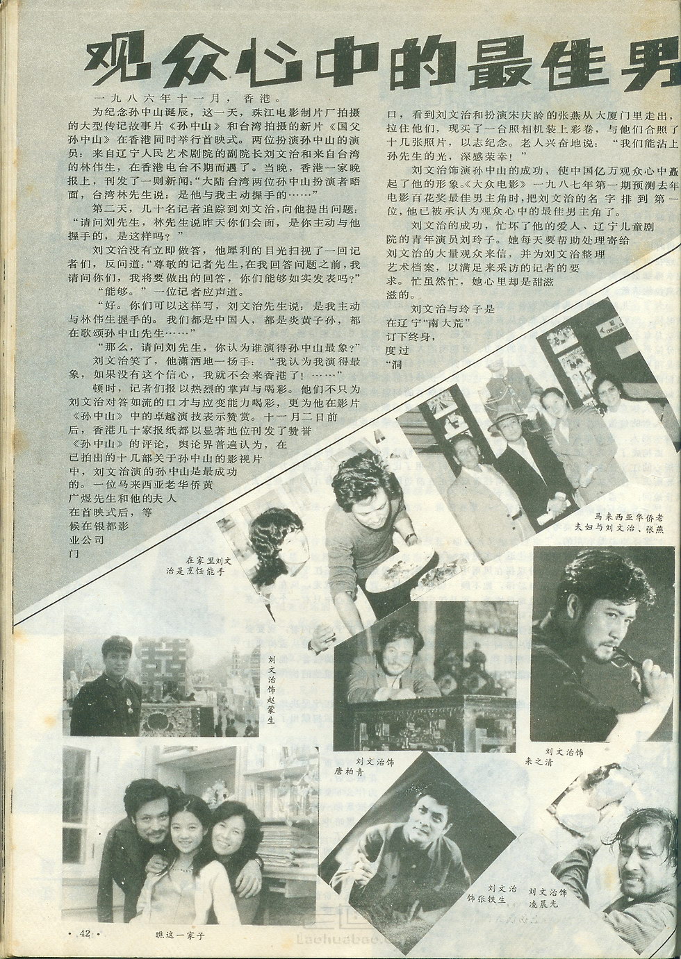观众心中的最佳男主角 刘文治 原著:徐光荣 编文:佚名 新春画报 1987年第4期 海阔中文网画报藏书扫描制作 转载请注明出处 1 2 目录 |<< < 上一页 下一页 > >>| 观众心中的最佳男主角 刘文治 < 上一页下一页 >