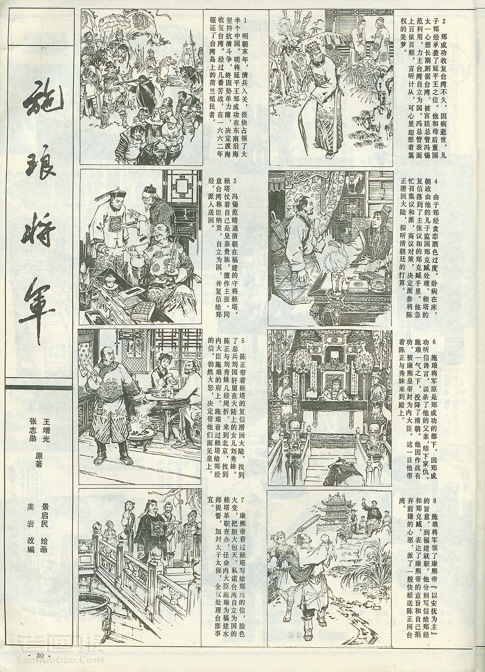 连环画 施琅将军(上) 原著:张志励,王增光 编文:美岩 绘画:景启民 新春画报 1987年第5期 海阔中文网画报藏书扫描制作 转载请注明出处 1 2 3 4 5 目录 |<< < 上一页 下一页 > >>| 施琅将军(上) < 上一页下一页 >