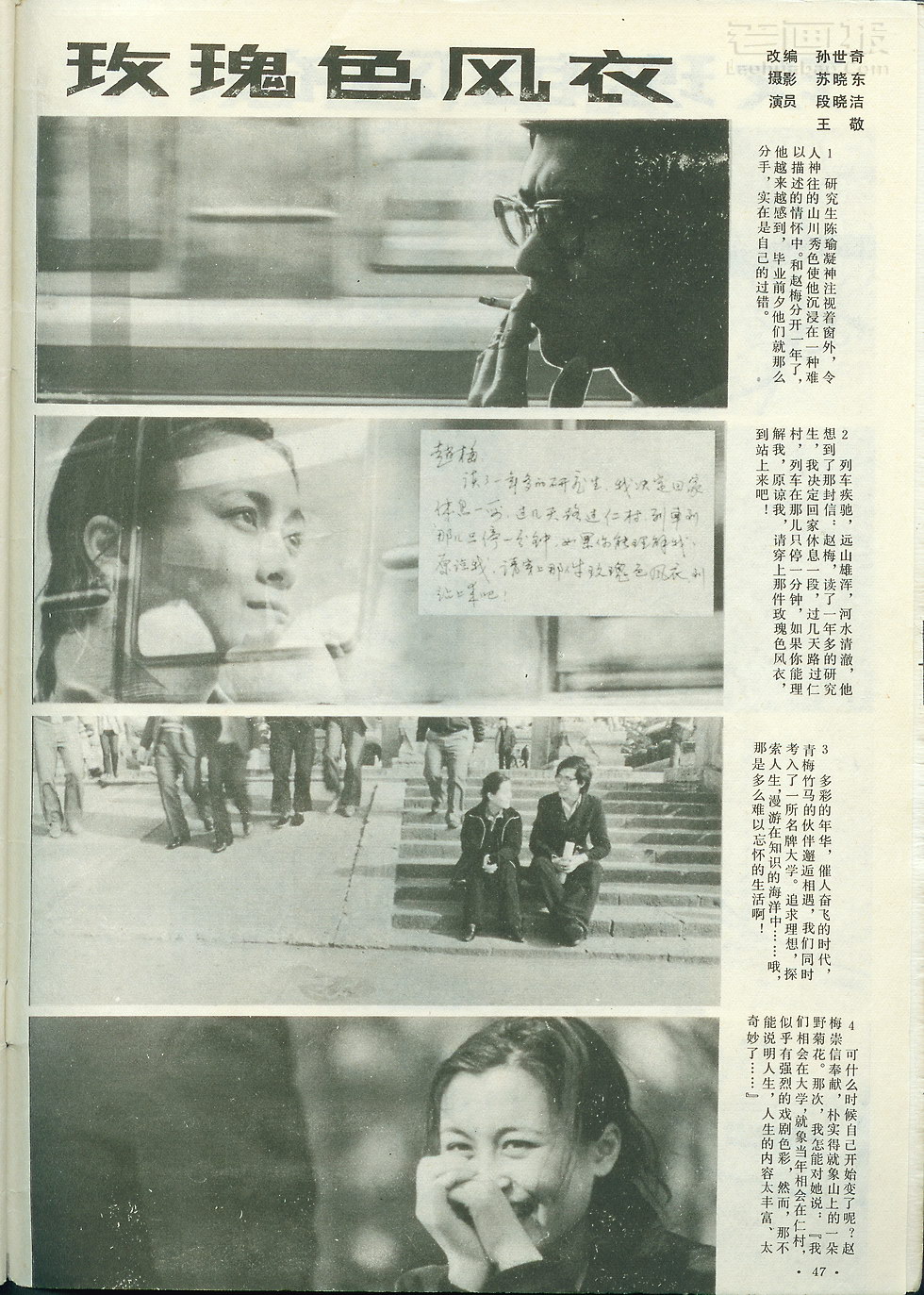 连环画 玫瑰色风衣 编文:孙世奇 绘画:苏晓东(演员 段晓杰 王敏) 新春画报 1987年第6期 海阔中文网画报藏书扫描制作 转载请注明出处 1 2 3 目录 |<< < 上一页 下一页 > >>| 玫瑰色风衣 < 上一页下一页 >