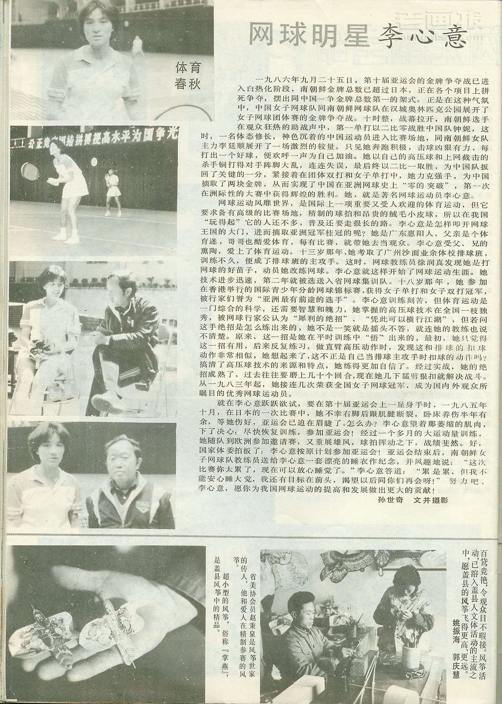 网球明星李心意 原著:孙世奇 编文:佚名 摄影:孙世奇 新春画报 1987年第6期 海阔中文网画报藏书扫描制作 转载请注明出处 目录 |<< < 上一页 下一页 > >>| 网球明星李心意 < 上一页下一页 >