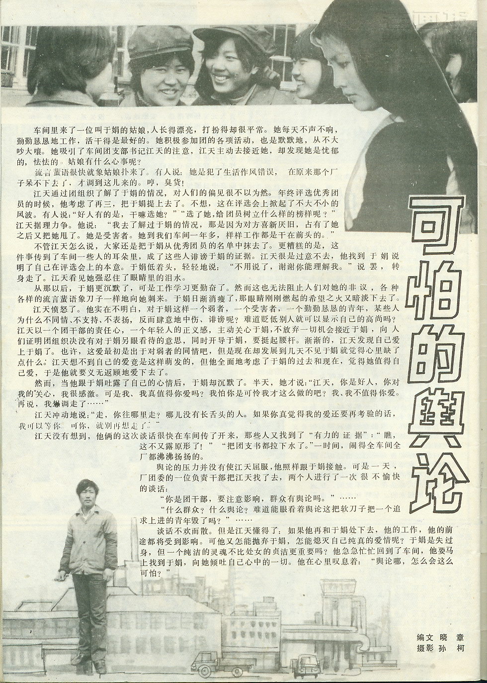 连环画 可怕的舆论 原著:晓章 编文:佚名 摄影:孙柯 新春画报 1987年第6期 海阔中文网画报藏书扫描制作 转载请注明出处 目录 |<< < 上一页 下一页 > >>| 可怕的舆论 < 上一页下一页 >
