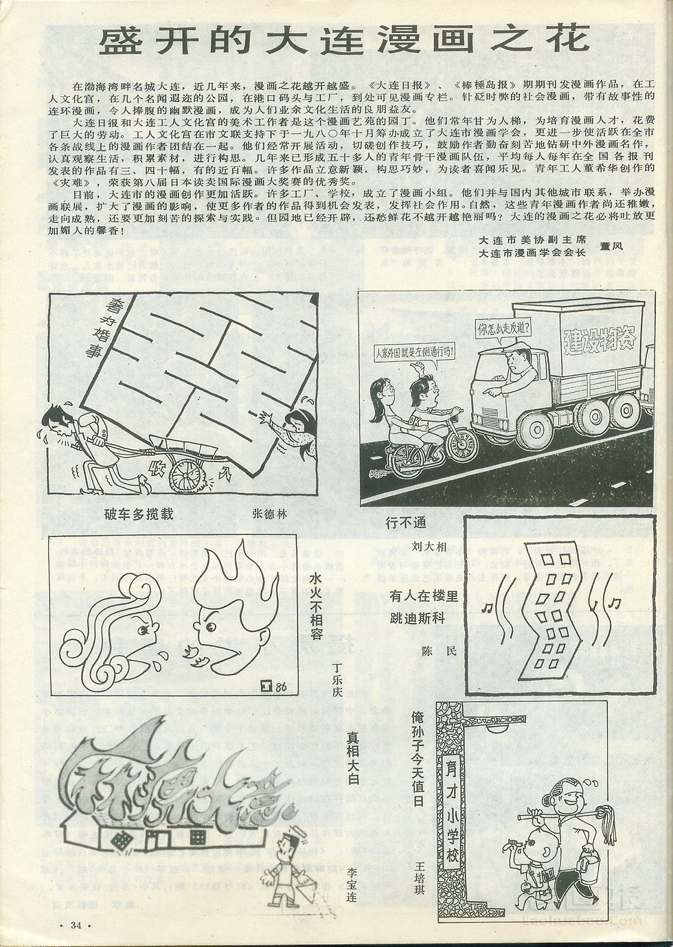 盛开的大连漫画之花 编文:董风 新春画报 1987年第8期 海阔中文网画报藏书扫描制作 转载请注明出处 大连市漫画学会会长 董风 1 2 目录 |<< < 上一页 下一页 > >>| 盛开的大连漫画之花 < 上一页下一页 >