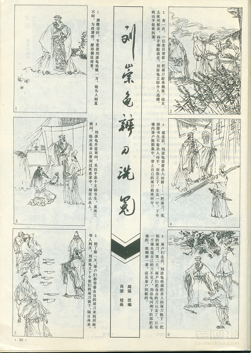 连环画 刘崇龟辩刀洗冤 编文:闫强 绘画:肖荣 新春画报 1987年第8期 海阔中文网画报藏书扫描制作 转载请注明出处 1 2 目录 |<< < 上一页 下一页 > >>| 刘崇龟辩刀洗冤 < 上一页下一页 >