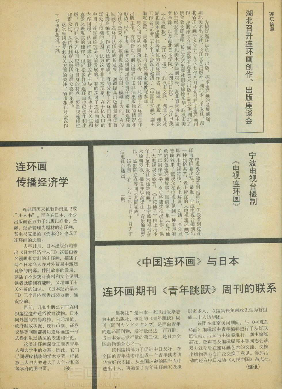 连坛信息“连环画传播经济学”等 编文:佚名 中国连环画 1987年第12期 海阔中文网画报藏书扫描制作 转载请注明出处 目录 |<< < 上一页 下一页 > >>| 连坛信息“连环画传播经济学”等 < 上一页下一页 >