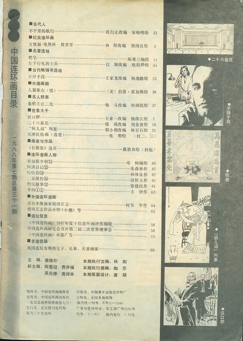 目录页《中国连环画》1988.7期 编文:佚名 中国连环画 1988年第7期 海阔中文网画报藏书扫描制作 转载请注明出处 目录 |<< < 上一页 下一页 > >>| 目录页《中国连环画》1988.7期 < 上一页下一页 >