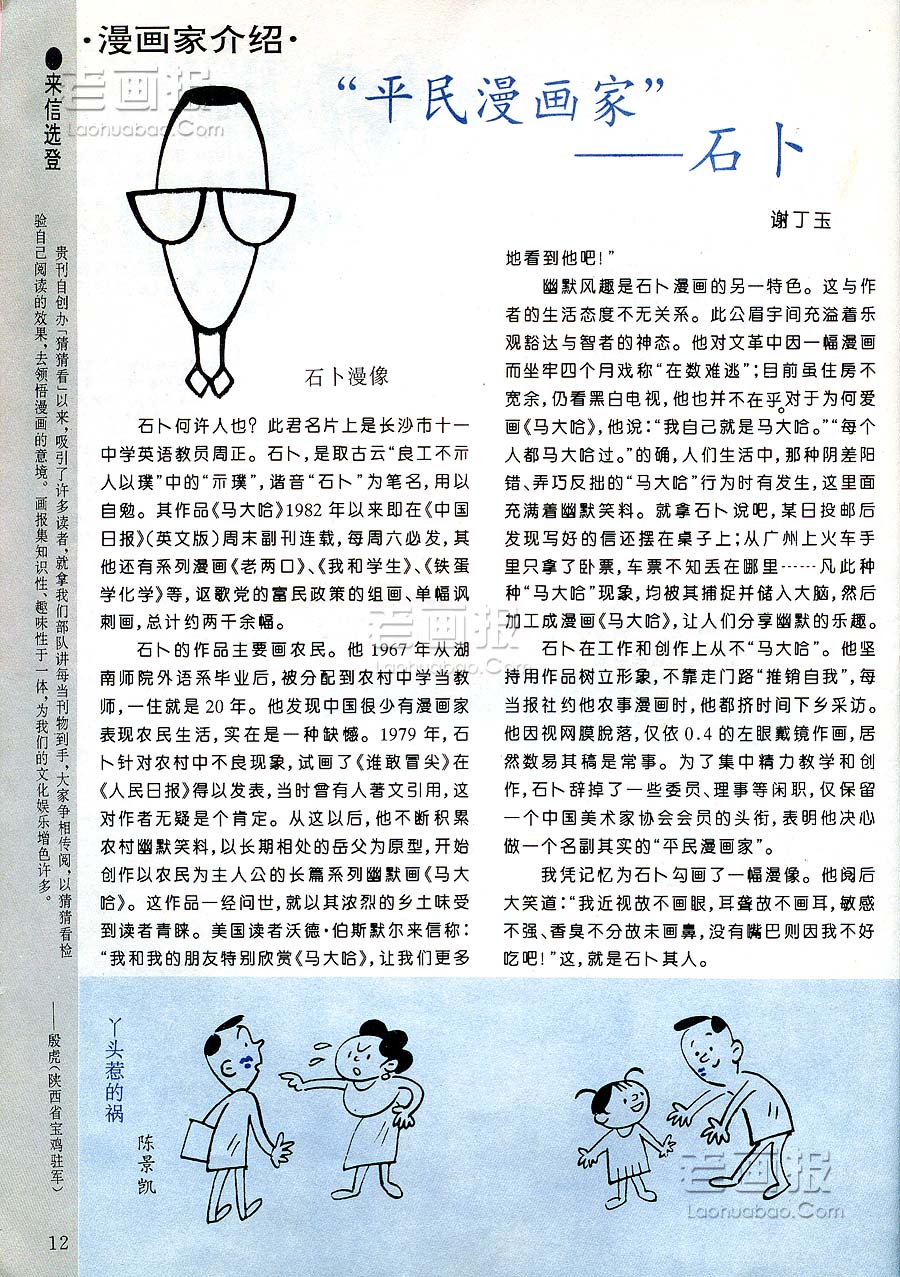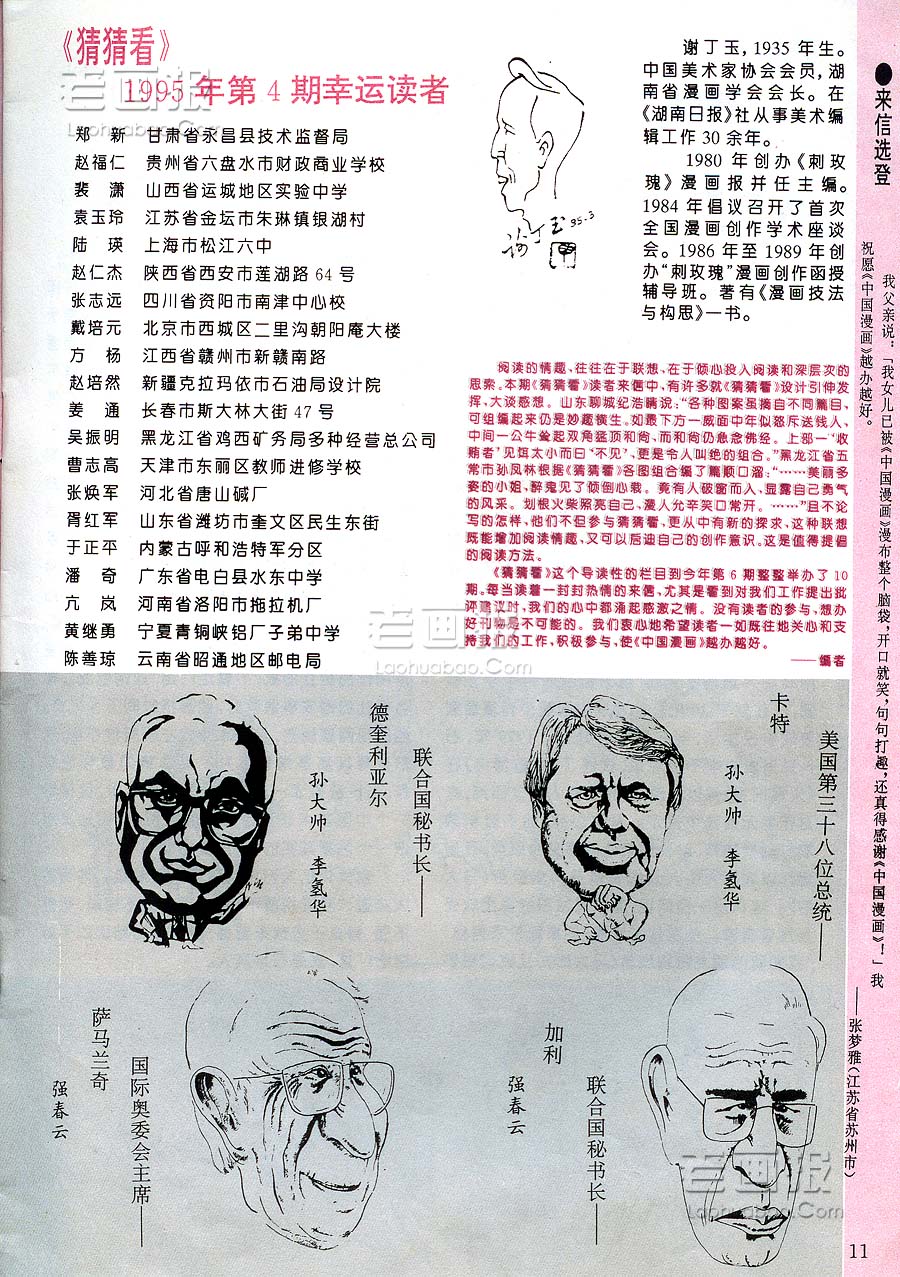 《中国漫画》1995年7(全书扫描36图) 第4页 编文:周发书,吴冠哲,谢丁玉,顾雁等 绘画:吴元,赵雪峰,方唐,姬朝晖,邓广庆等 中国漫画 1995年第7期 海阔中文网画报藏书扫描制作 转载请注明出处 “平民漫画家”石卜 谢丁玉 1 2 3 4 5 6 7 8 9 目录 |<< < 上一页 下一页 > >>| 《中国漫画》1995年7(全书扫描36图) < 上一页下一页 >