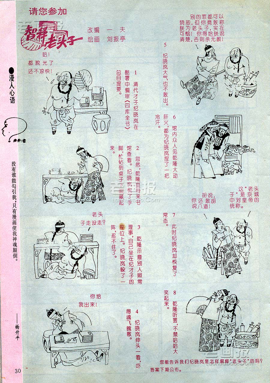 《中国漫画》1995年7(全书扫描36图) 第8页 编文:周发书,吴冠哲,谢丁玉,顾雁等 绘画:吴元,赵雪峰,方唐,姬朝晖,邓广庆等 中国漫画 1995年第7期 海阔中文网画报藏书扫描制作 转载请注明出处 智释“老头子” 刘振亭 1 2 3 4 5 6 7 8 9 目录 |<< < 上一页 下一页 > >>| 《中国漫画》1995年7(全书扫描36图) < 上一页下一页 >