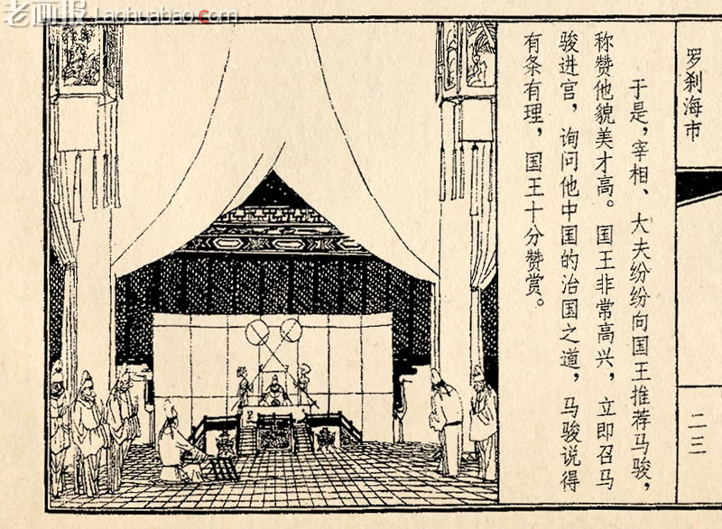 罗刹海市 第3页 原著:蒲松龄《聊斋志异》 编文:陈元宁 绘画:杨雨青 天津人民美术出版社 1970年 1 2 3 4 5 6 7 目录 |<< < 上一页 下一页 > >>| 罗刹海市 < 上一页下一页 >