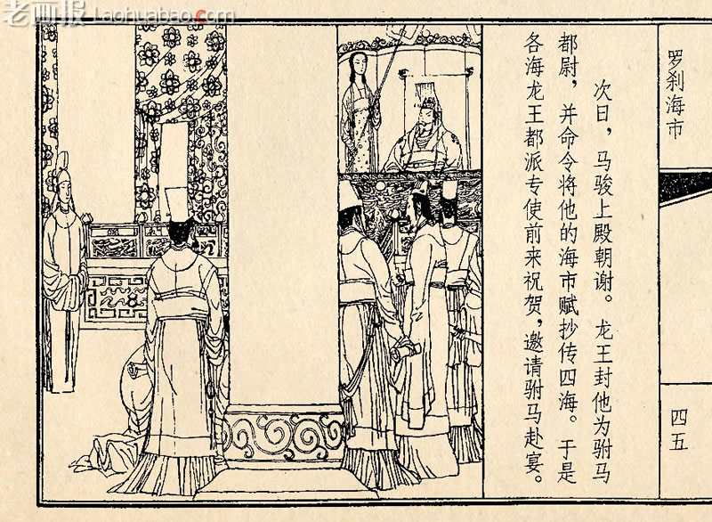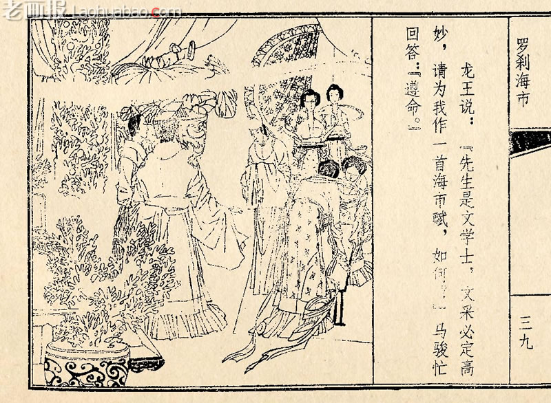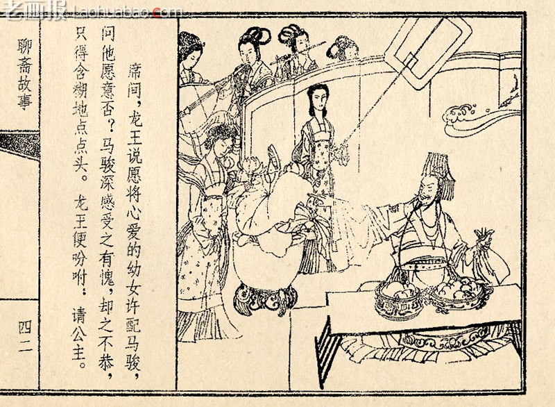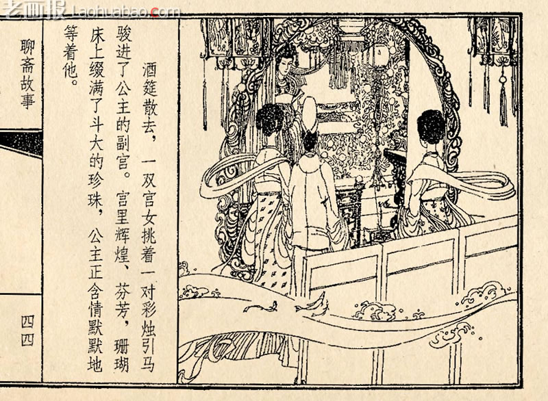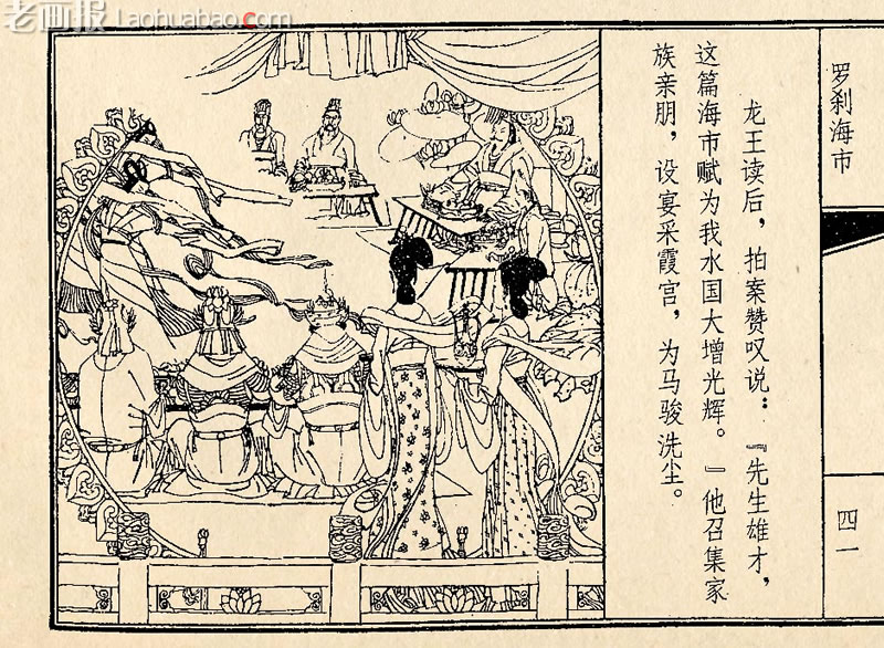罗刹海市 第5页 原著:蒲松龄《聊斋志异》 编文:陈元宁 绘画:杨雨青 天津人民美术出版社 1970年 1 2 3 4 5 6 7 目录 |<< < 上一页 下一页 > >>| 罗刹海市 < 上一页下一页 >
