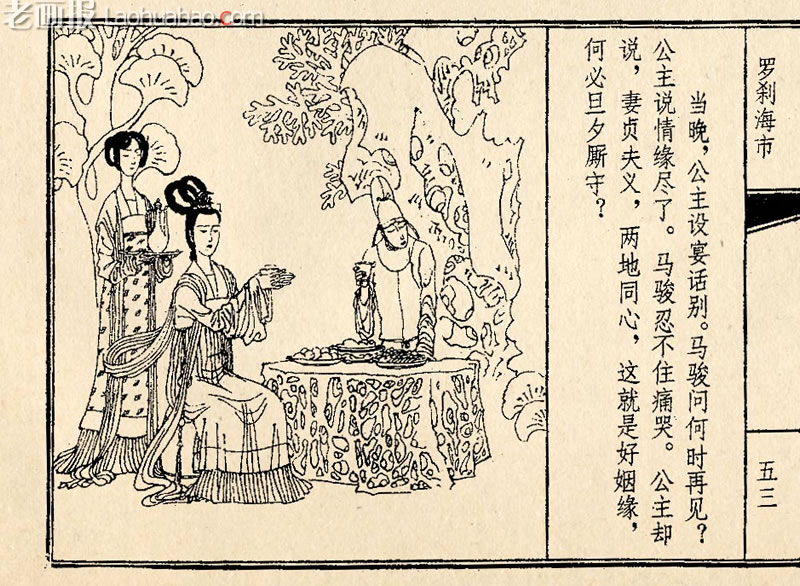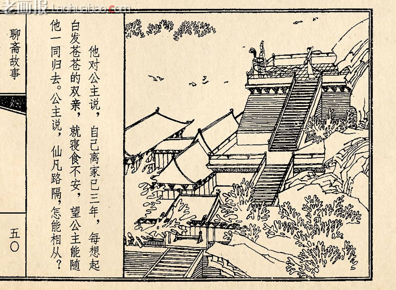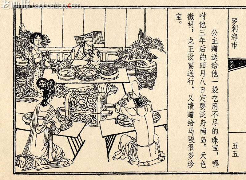 罗刹海市 第6页 原著:蒲松龄《聊斋志异》 编文:陈元宁 绘画:杨雨青 天津人民美术出版社 1970年 1 2 3 4 5 6 7 目录 |<< < 上一页 下一页 > >>| 罗刹海市 < 上一页下一页 >