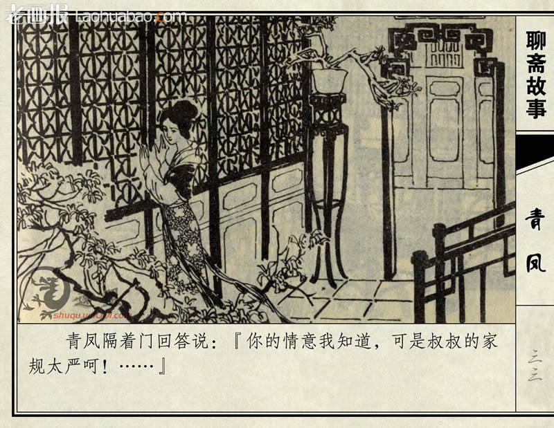 青凤 第4页 原著:蒲松龄《聊斋志异》 编文:紫坤 绘画:阴衍江 施振广 天津人民美术出版社 1970年 1 2 3 4 5 6 目录 |<< < 上一页 下一页 > >>| 青凤 < 上一页下一页 >