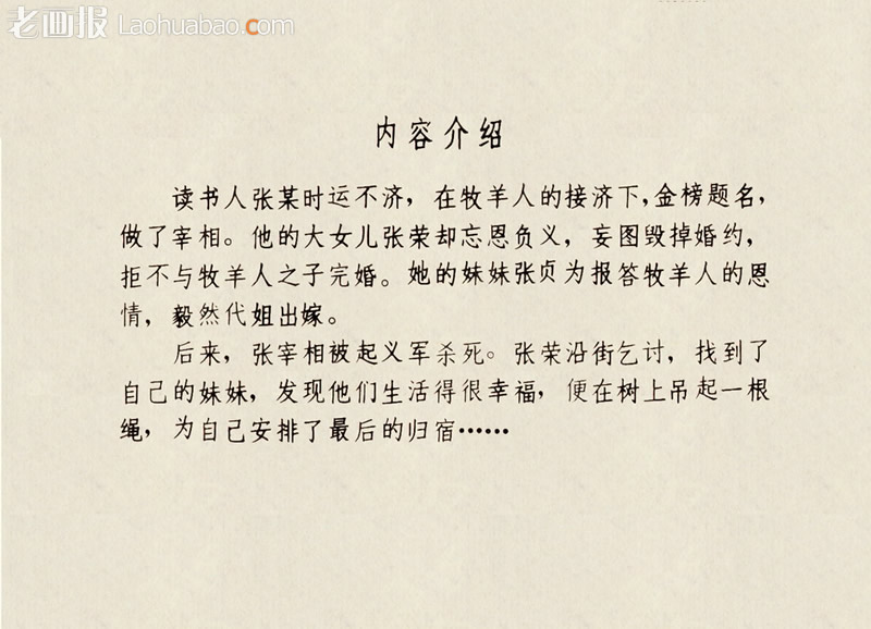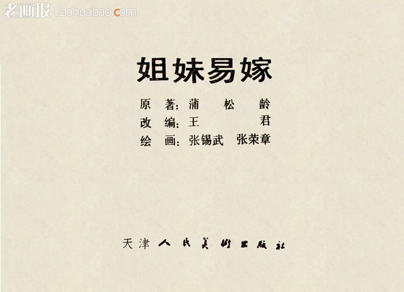 姐妹易嫁 原著:蒲松龄《聊斋志异》 编文:王君 绘画:张锡武 张荣章 1970年 01 02 03 04 05 06 07 08 09 10 … 目录 |<< < 上一页 下一页 > >>| 姐妹易嫁 < 上一页下一页 >