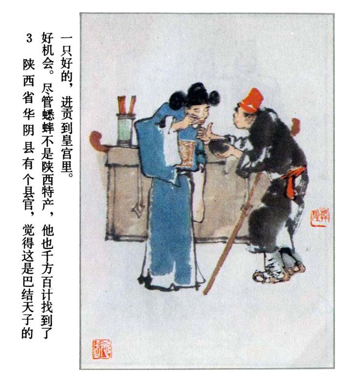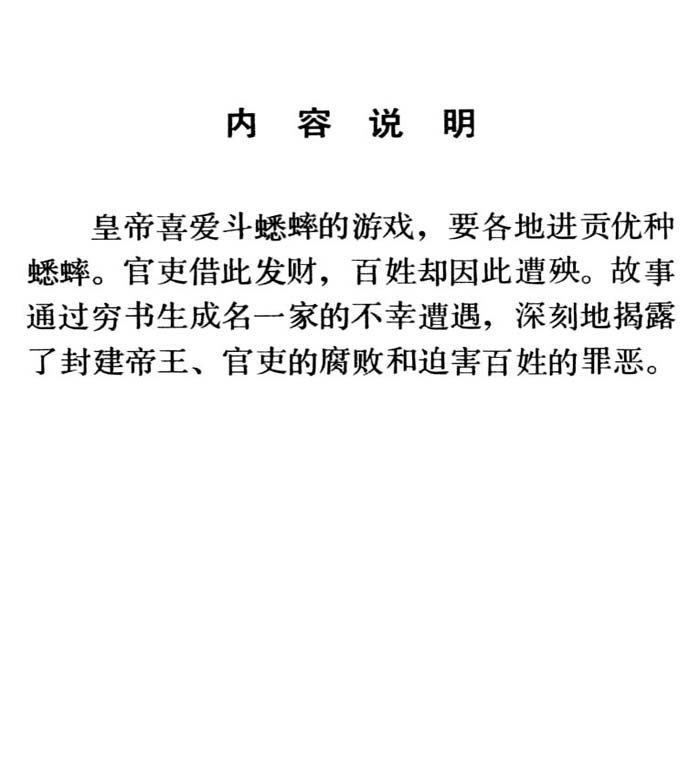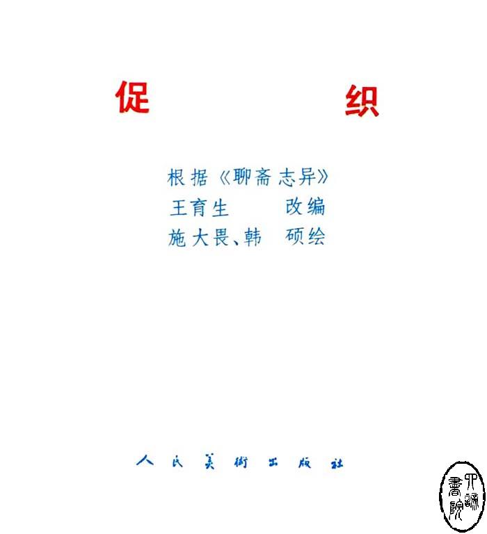 促织 【彩版聊斋故事】 原著:《聊斋志异》蒲松龄 编文:王育生 绘画:施大畏,韩硕 人民美术出版社 1981年 这本连环画来源于网络,并非海阔中文网画报藏书,详细出处请见图片水印和制作说明,感谢连友扫描,如有不妥请及时告知。 1 2 3 4 5 6 7 8 目录 |<< < 上一页 下一页 > >>| 促织 【彩版聊斋故事】 < 上一页下一页 >