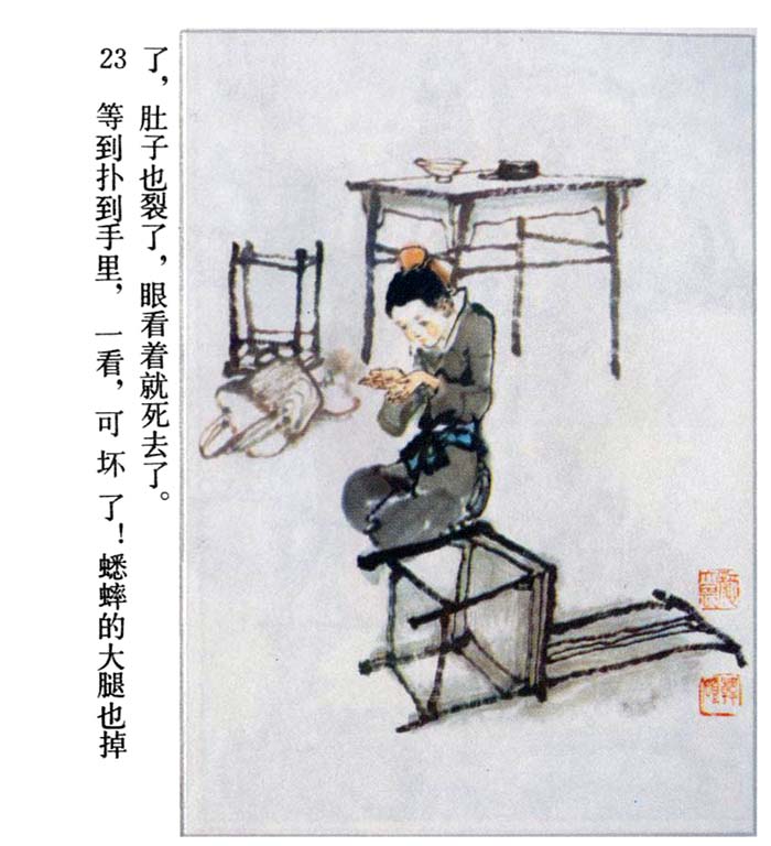 促织 【彩版聊斋故事】 第4页 原著:《聊斋志异》蒲松龄 编文:王育生 绘画:施大畏,韩硕 人民美术出版社 1981年 这本连环画来源于网络,并非海阔中文网画报藏书,详细出处请见图片水印和制作说明,感谢连友扫描,如有不妥请及时告知。 1 2 3 4 5 6 7 8 目录 |<< < 上一页 下一页 > >>| 促织 【彩版聊斋故事】 < 上一页下一页 >