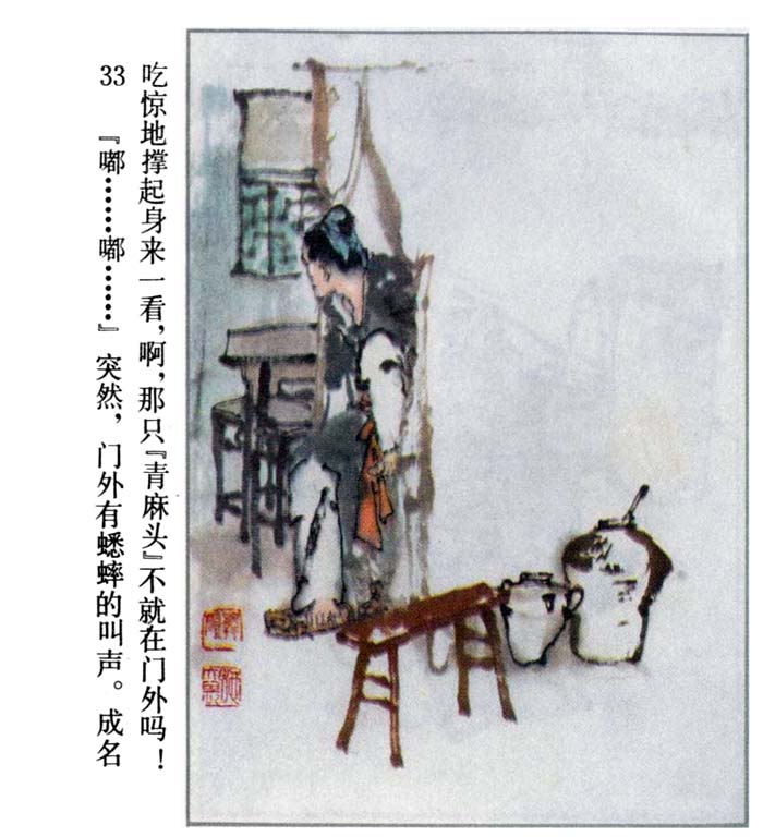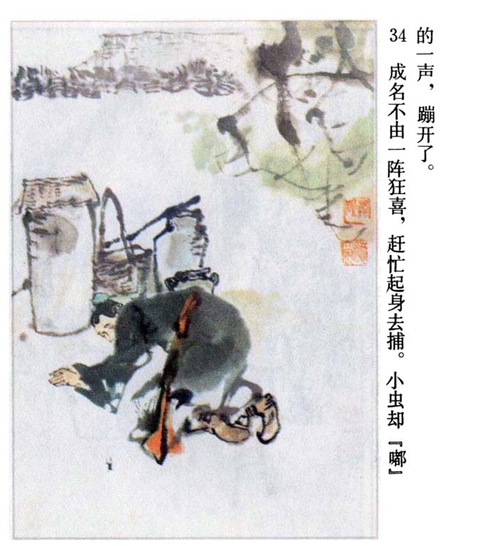促织 【彩版聊斋故事】 第5页 原著:《聊斋志异》蒲松龄 编文:王育生 绘画:施大畏,韩硕 人民美术出版社 1981年 这本连环画来源于网络,并非海阔中文网画报藏书,详细出处请见图片水印和制作说明,感谢连友扫描,如有不妥请及时告知。 1 2 3 4 5 6 7 8 目录 |<< < 上一页 下一页 > >>| 促织 【彩版聊斋故事】 < 上一页下一页 >