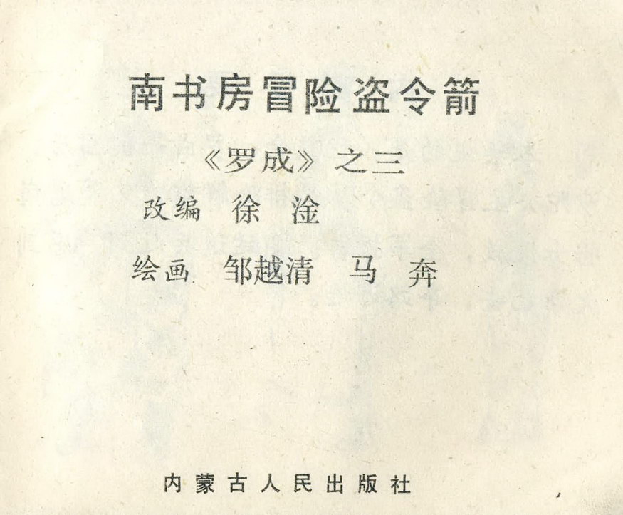 南书房冒险盗令箭 《罗成》之三 原著:根据同名小说 编文:徐淦 绘画:邹越清,马奔 内蒙古人民出版社 1985年 这本连环画来源于网络,并非海阔中文网画报藏书,详细出处请见图片水印和制作说明,感谢连友扫描,如有不妥请及时告知。 01 02 03 04 05 06 07 08 09 10 … 目录 |<< < 上一页 下一页 > >>| 南书房冒险盗令箭 《罗成》之三 < 上一页下一页 >