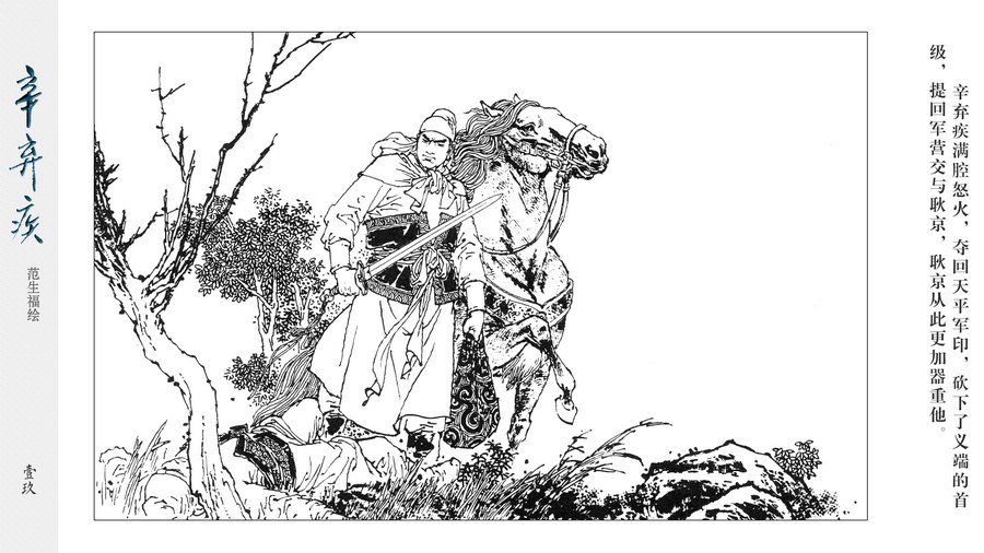 辛弃疾 第5页 原著:佚名 编文:沈为宁 绘画:范生福 上海人民美术出版社 2011年 这本连环画来源于网络,并非海阔中文网画报藏书,详细出处请见图片水印和制作说明,感谢连友扫描,如有不妥请及时告知。 01 02 03 04 05 06 07 08 09 10 … 目录 |<< < 上一页 下一页 > >>| 辛弃疾 < 上一页下一页 >