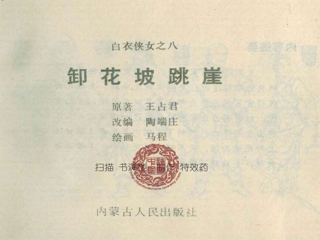 卸花坡跳崖 白衣侠女之八 原著:王占军 编文:陶端庄 绘画:马程 内蒙古人民出版社 1984年 这本连环画来源于网络,并非海阔中文网画报藏书,详细出处请见图片水印和制作说明,感谢连友扫描,如有不妥请及时告知。 01 02 03 04 05 06 07 08 09 10 … 目录 |<< < 上一页 下一页 > >>| 卸花坡跳崖 白衣侠女之八 < 上一页下一页 >