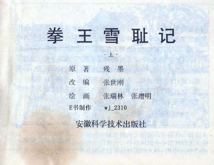 拳王雪耻记(上) 原著:残墨 编文:张世刚 绘画:张瑞林,张瓒明 安徽科学技术出版社 1985年 这本连环画来源于网络,并非海阔中文网画报藏书,详细出处请见图片水印和制作说明,感谢连友扫描,如有不妥请及时告知。 01 02 03 04 05 06 07 08 09 10 … 目录 |<< < 上一页 下一页 > >>| 拳王雪耻记(上) < 上一页下一页 >