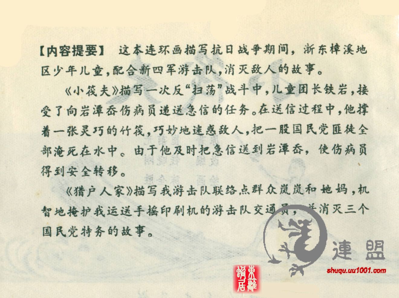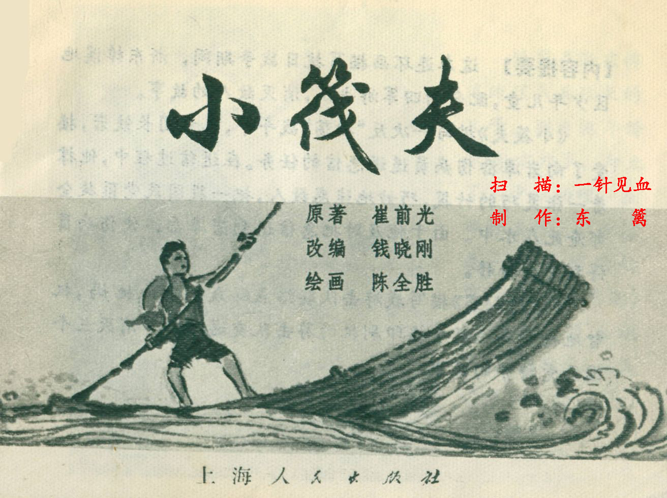 小筏夫 原著:崔前光 编文:钱晓刚 绘画:陈全胜 上海人民出版社 1975年 这本连环画来源于网络,并非海阔中文网画报藏书,详细出处请见图片水印和制作说明,感谢连友扫描,如有不妥请及时告知。 1 2 3 4 5 目录 |<< < 上一页 下一页 > >>| 小筏夫 < 上一页下一页 >