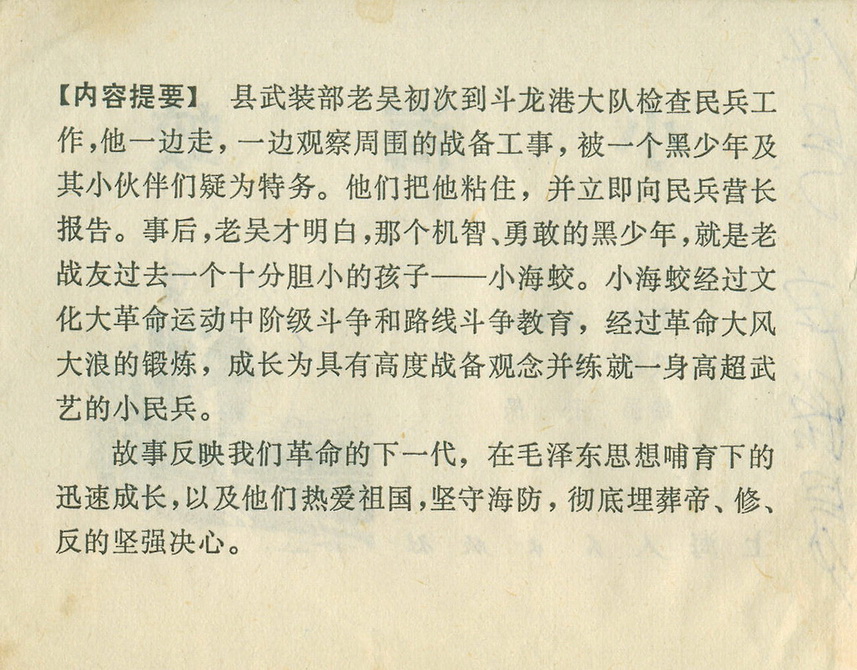 小海蛟 原著:刘本夫 编文:林萱 绘画:孙愚 上海人民出版社 1975年 这本连环画来源于网络,并非海阔中文网画报藏书,详细出处请见图片水印和制作说明,感谢连友扫描,如有不妥请及时告知。 1 2 3 4 5 6 7 目录 |<< < 上一页 下一页 > >>| 小海蛟 < 上一页下一页 >