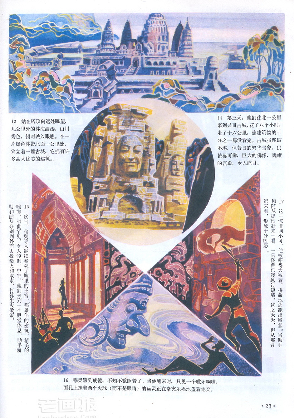连环画 《吴哥古窟》 天南地北 第3页 编文:程代诚 绘画:叶公贤 奥秘 1986年第12期 海阔中文网画报藏书扫描制作 转载请注明出处 1 2 3 4 5 目录 |<< < 上一页 下一页 > >>| 吴哥古窟 天南地北 < 上一页下一页 >