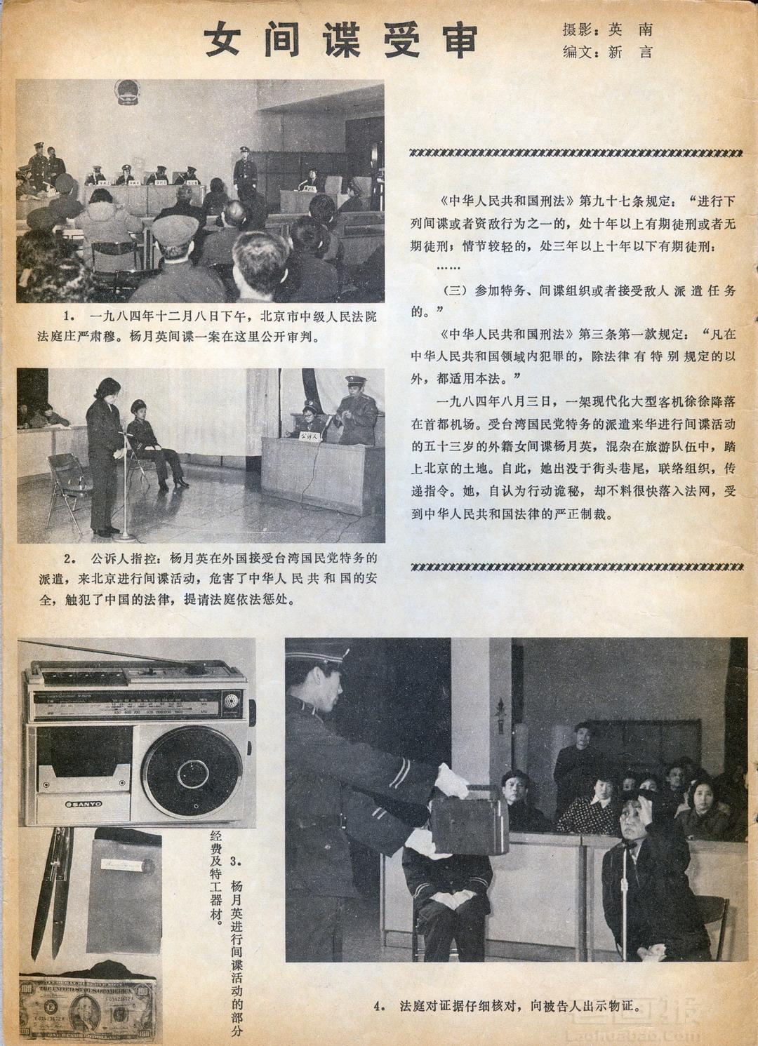 连环画 《女间谍受审》 摄影故事 编文:新言 摄影:英南 法制画报 1985年第3期 海阔中文网画报藏书扫描制作 转载请注明出处 1 2 目录 |<< < 上一页 下一页 > >>| 女间谍受审 摄影故事 < 上一页下一页 >