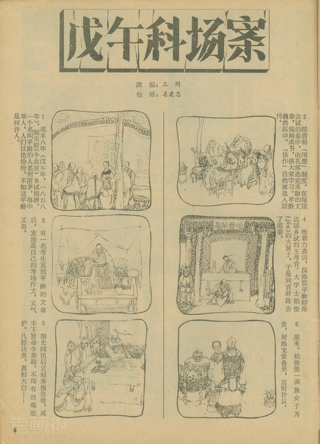 连环画 《戊午科场案》 编文:工同 绘画:姜建忠 法制画报 1985年第4期 海阔中文网画报藏书扫描制作 转载请注明出处 1 2 3 4 目录 |<< < 上一页 下一页 > >>| 戊午科场案 < 上一页下一页 >